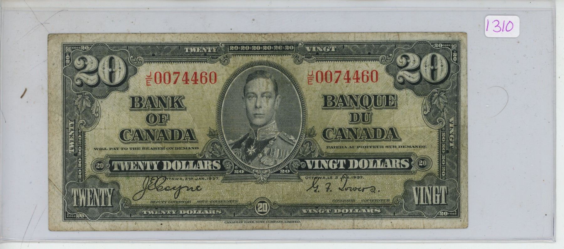 1937 Canadian 20 dollar bill - Coyne/Towers - J/E 0074460
