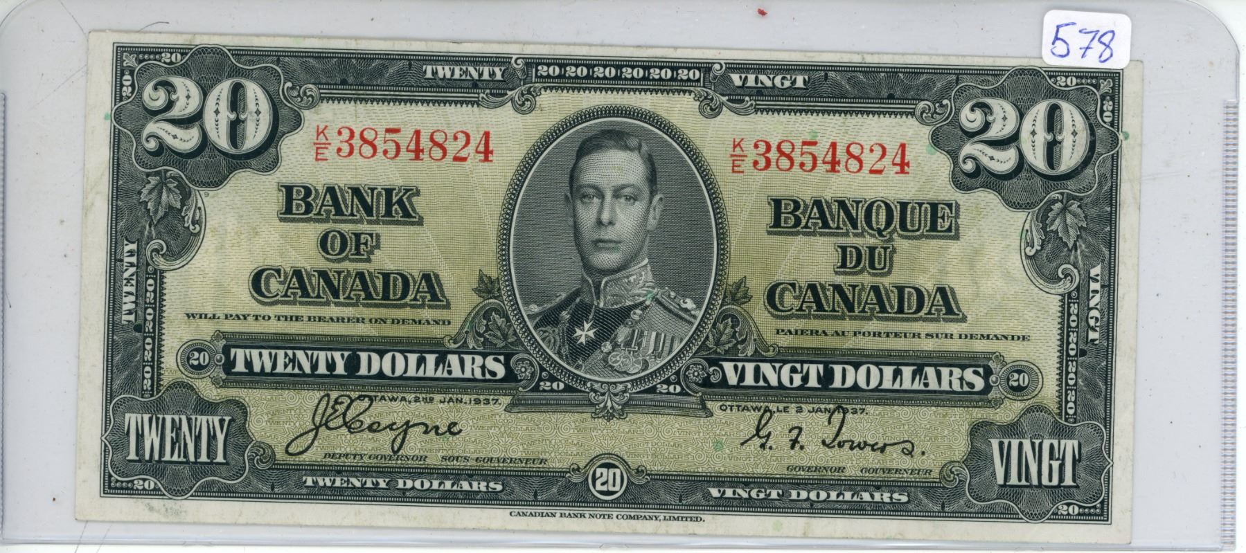 1937 Canadian 20 dollar bill - Coyne/Towers - K/E 3854824