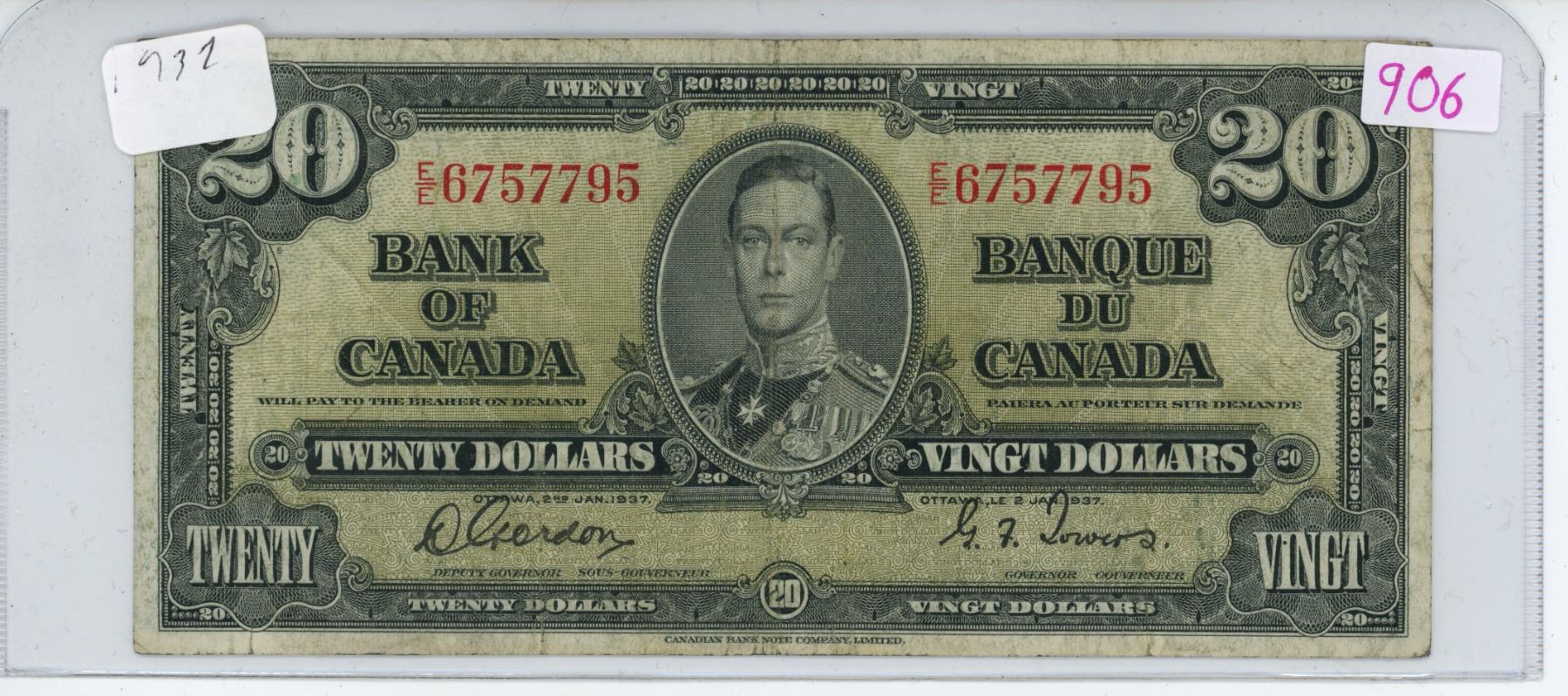 1937 Canadian 20 dollar bill - Gordon/Towers - E/E 6757795
