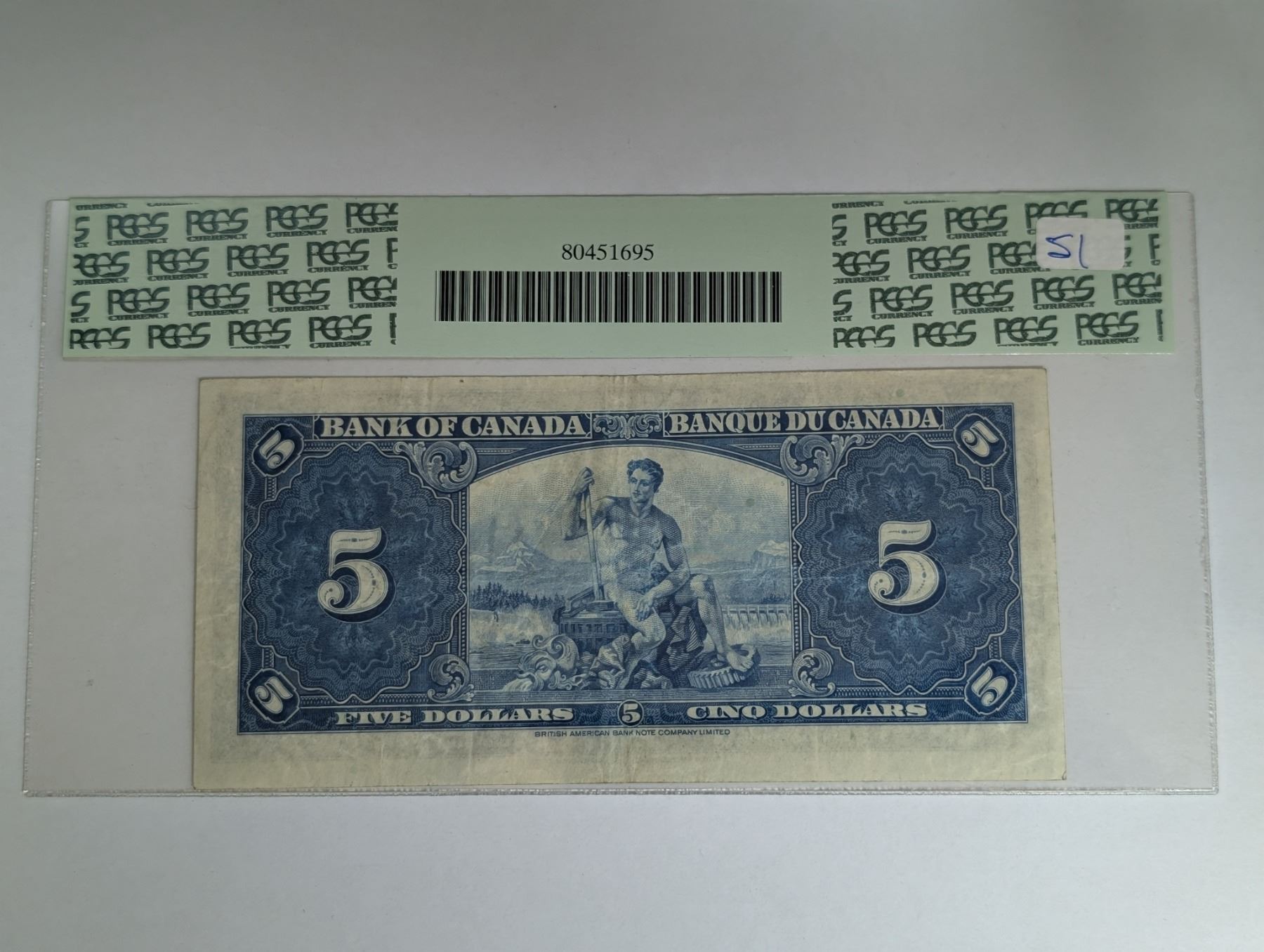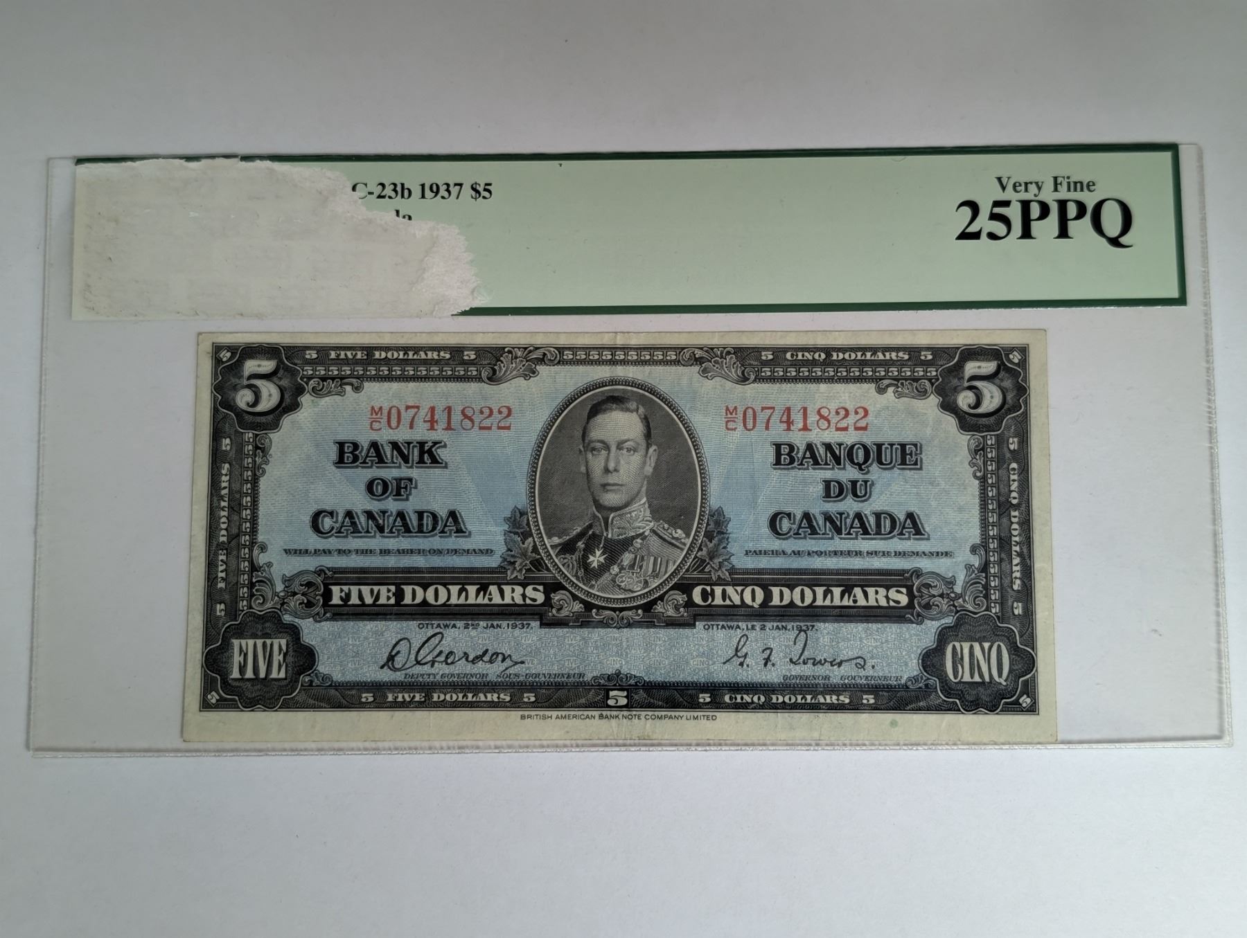 1937 Canadian 5 Dollar Bill 0741822 GRADED (Grade Part Damaged) 25PPQ Very Fine