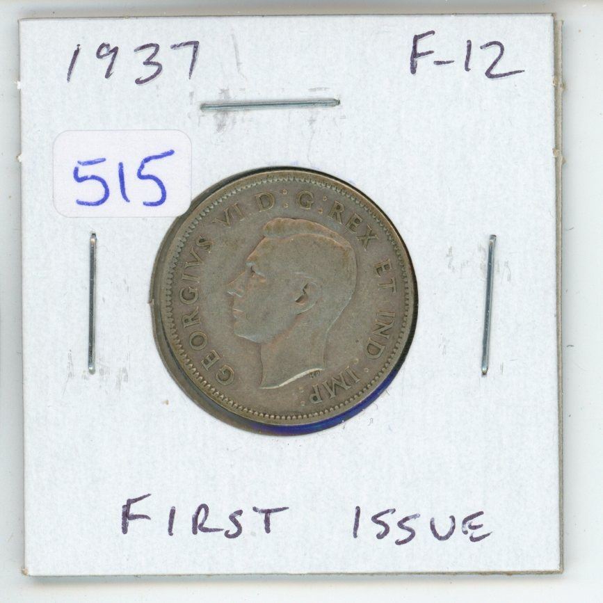 1937 Canadian Silver 25 Cents. First issue of King George VI. F-12.