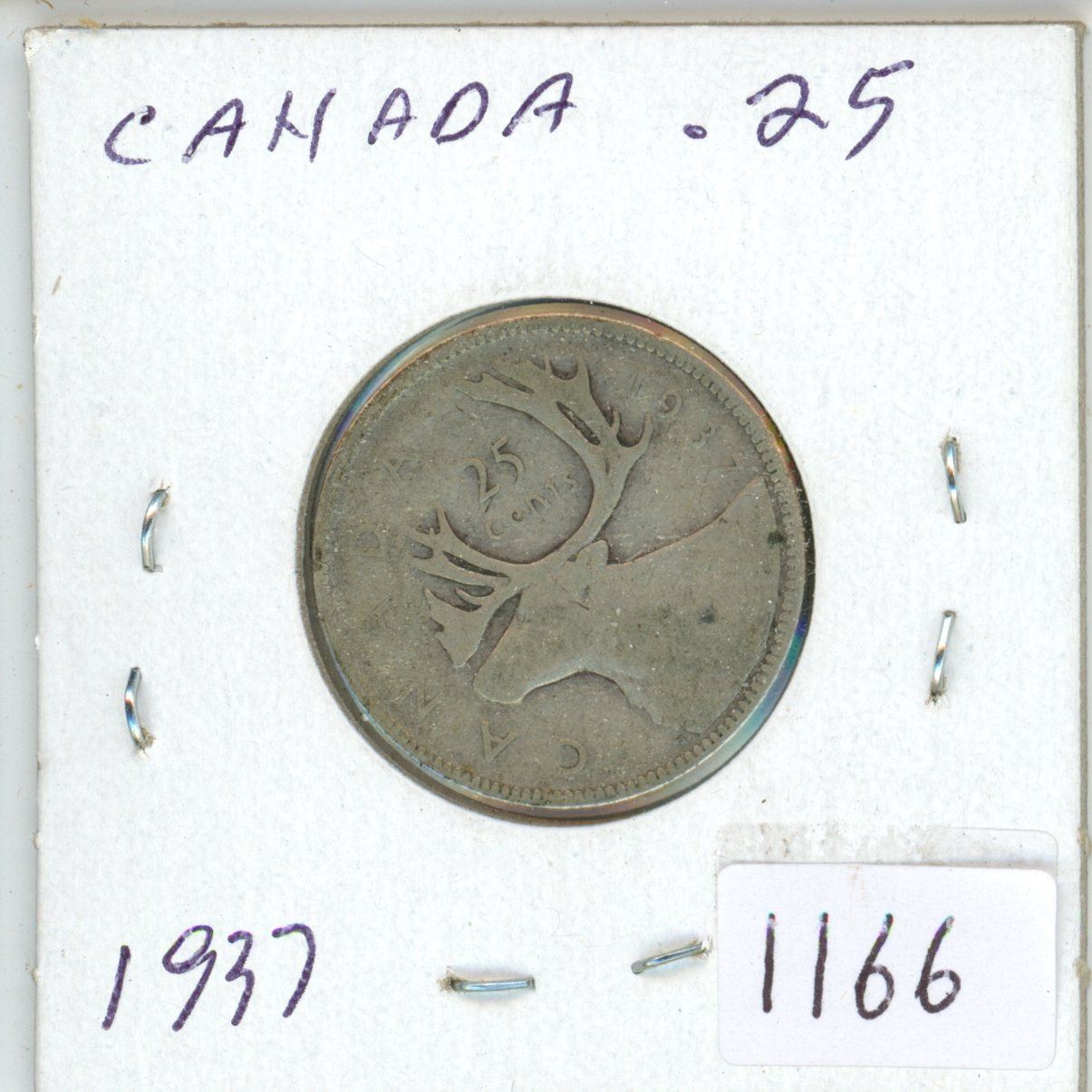 1937 Canadian silver 25 cent coin