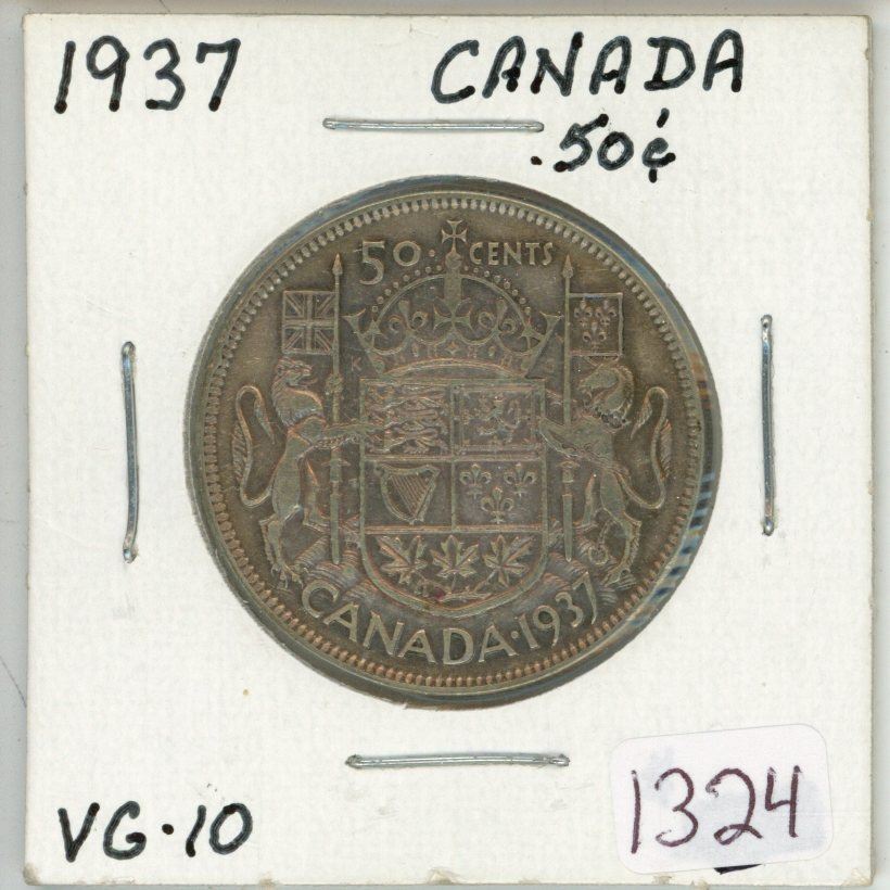 1937 Canadian silver 50 cent coin