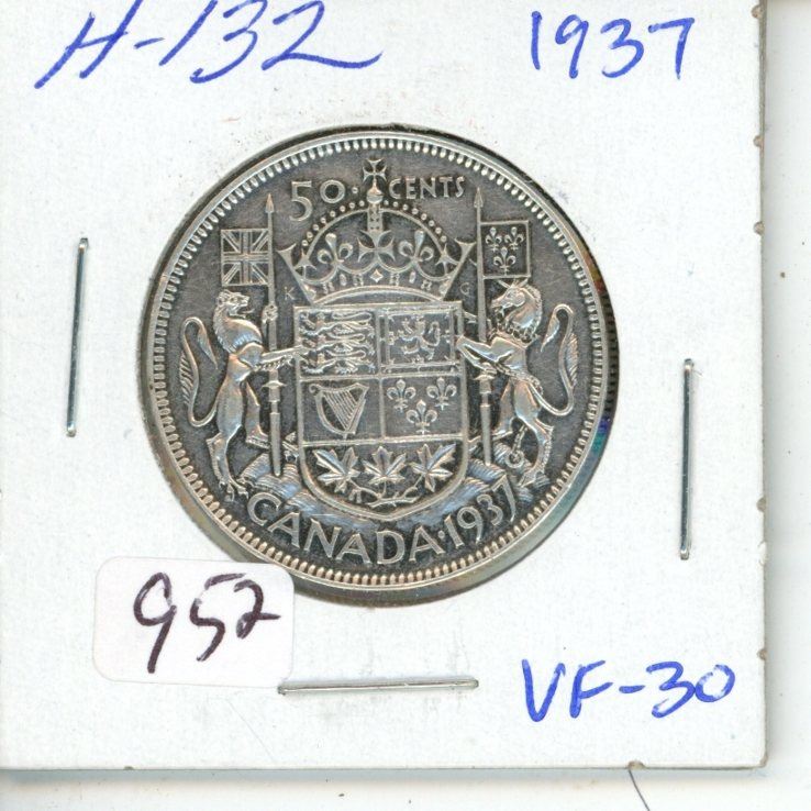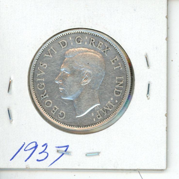 1937 George VI Silver 50 cents. First year of issue for King George VI. VF-30.