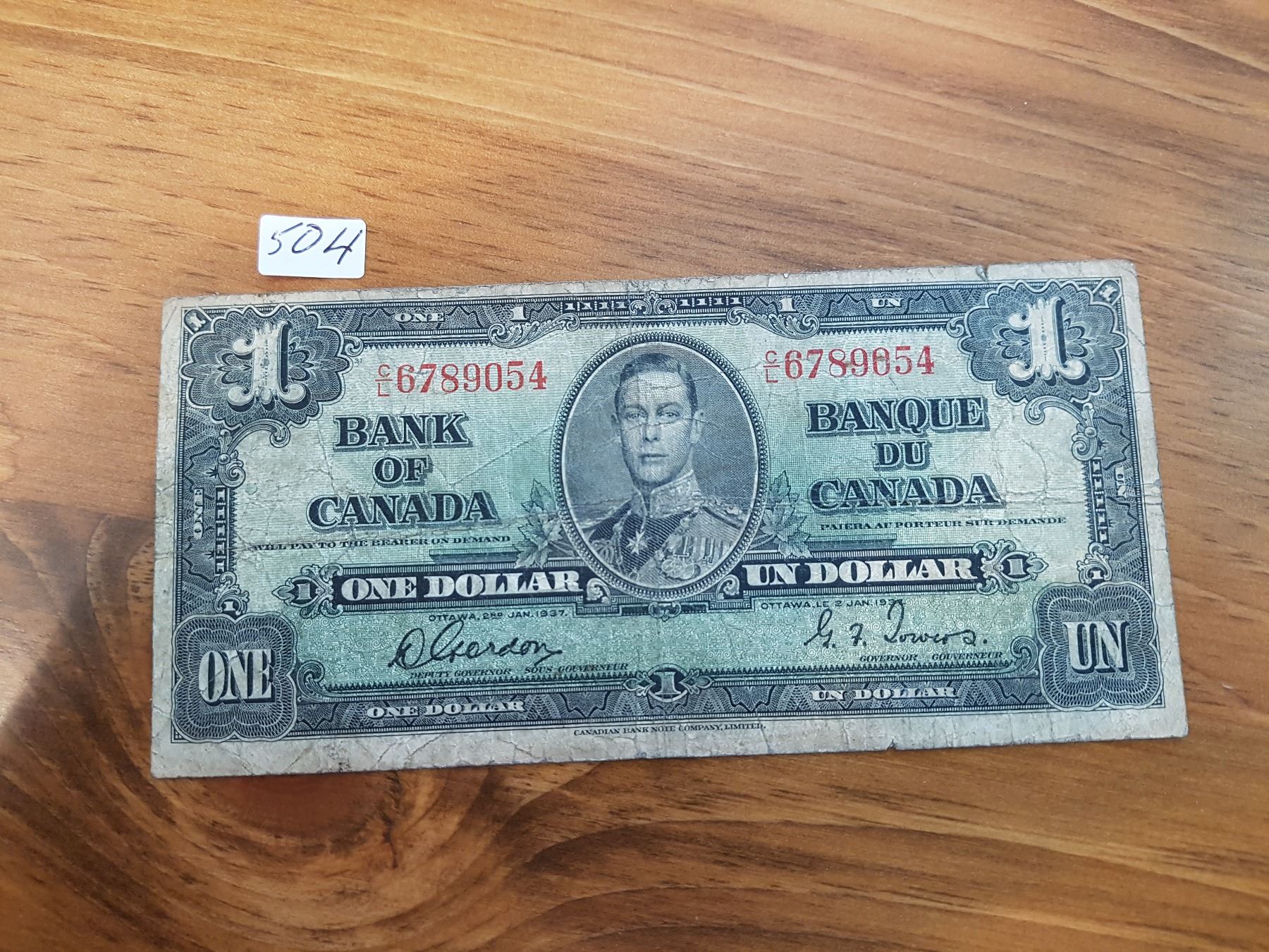 1937 One Dollar Canada King George
