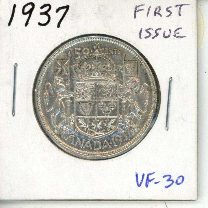 1937 Silver 50 Cents. The first year of issue of King George VI. Key Date. Mintage of 192,016. VF-30.