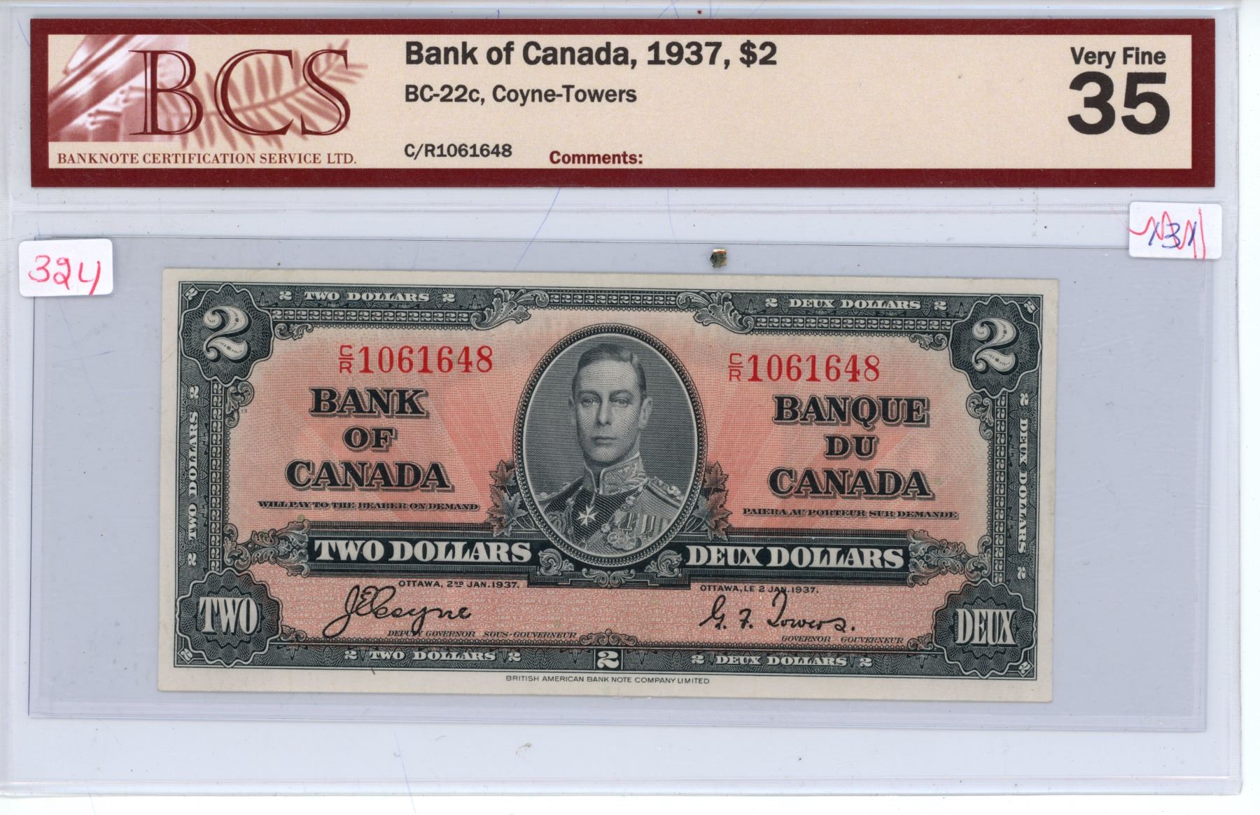 1937 bank of canada 2 dollar bill- VF-35