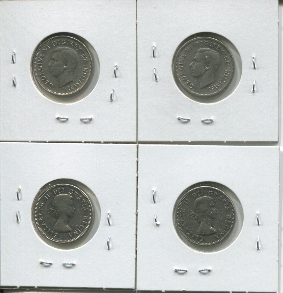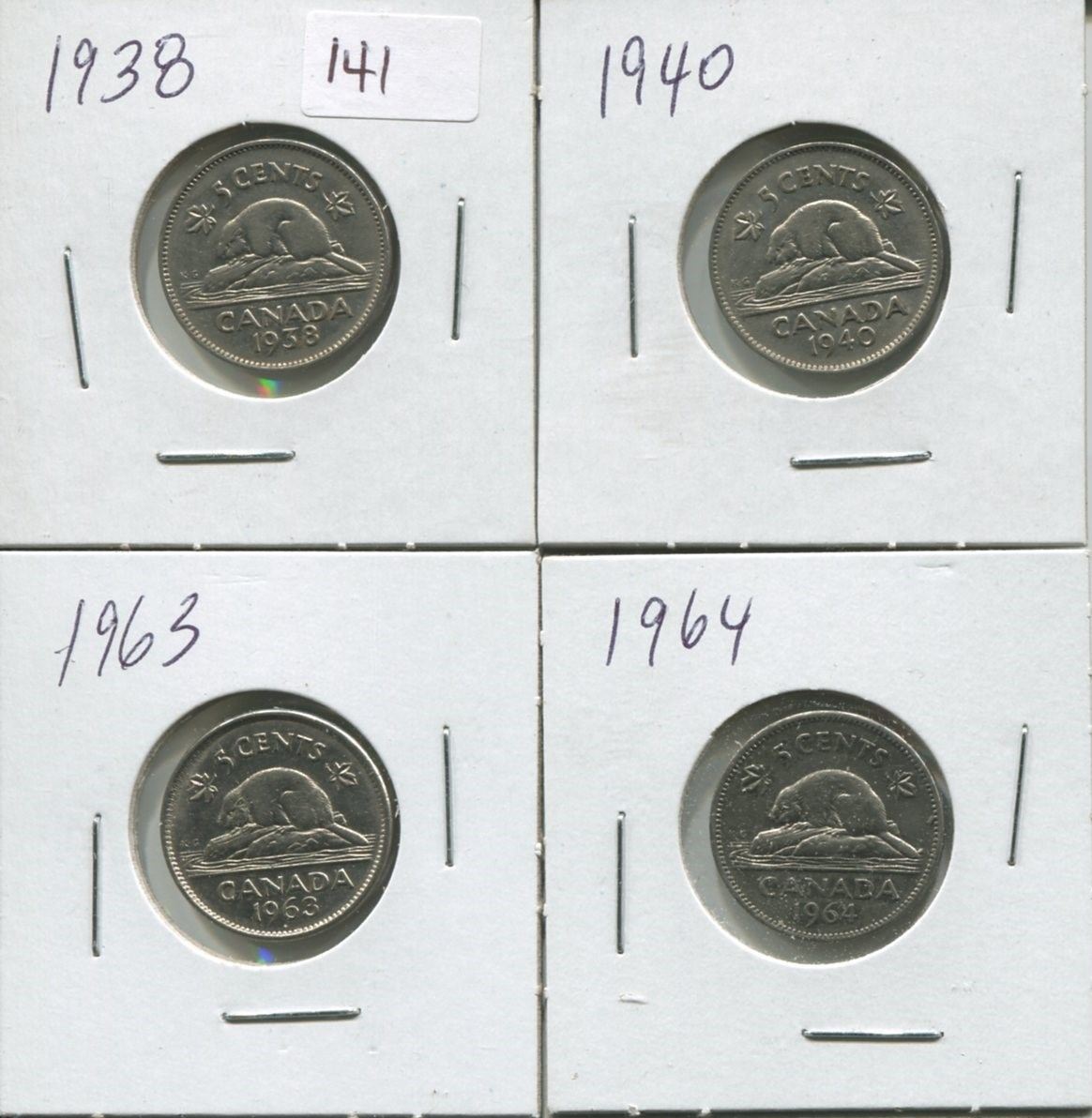 1938.40,63 & 64 Beaver,4-Canadian 5 cent coins,King George VI and Queen Elizabeth II