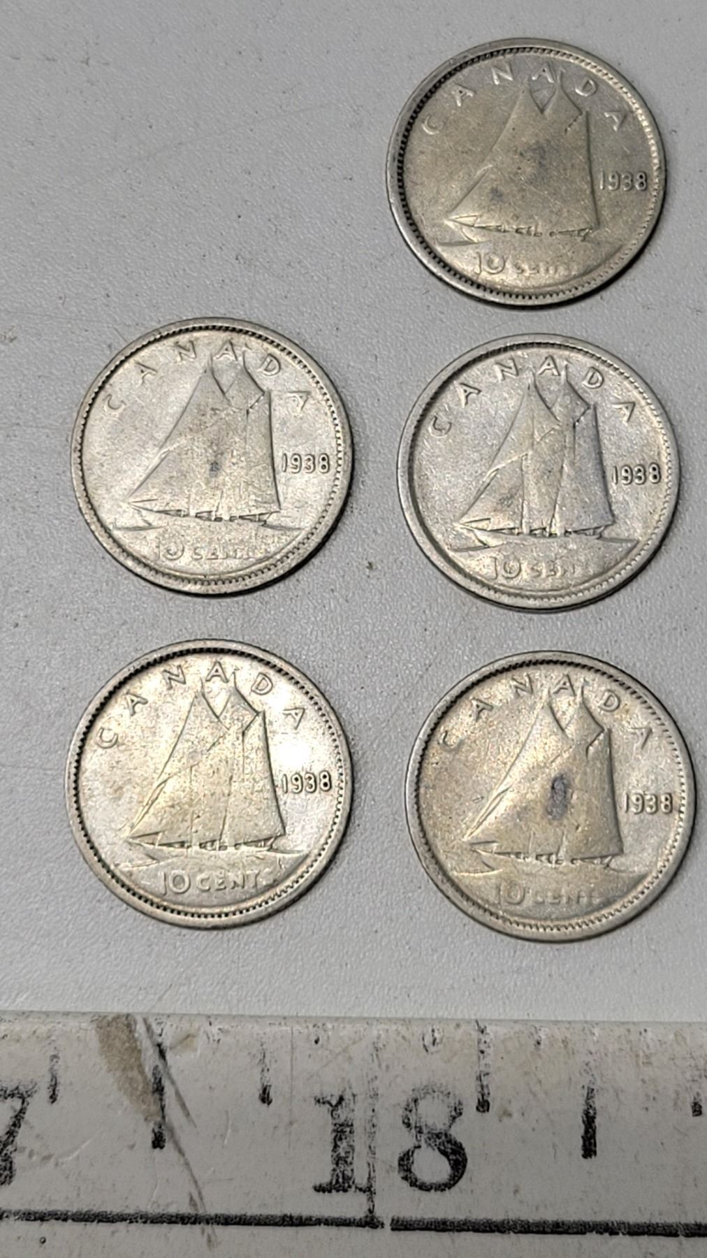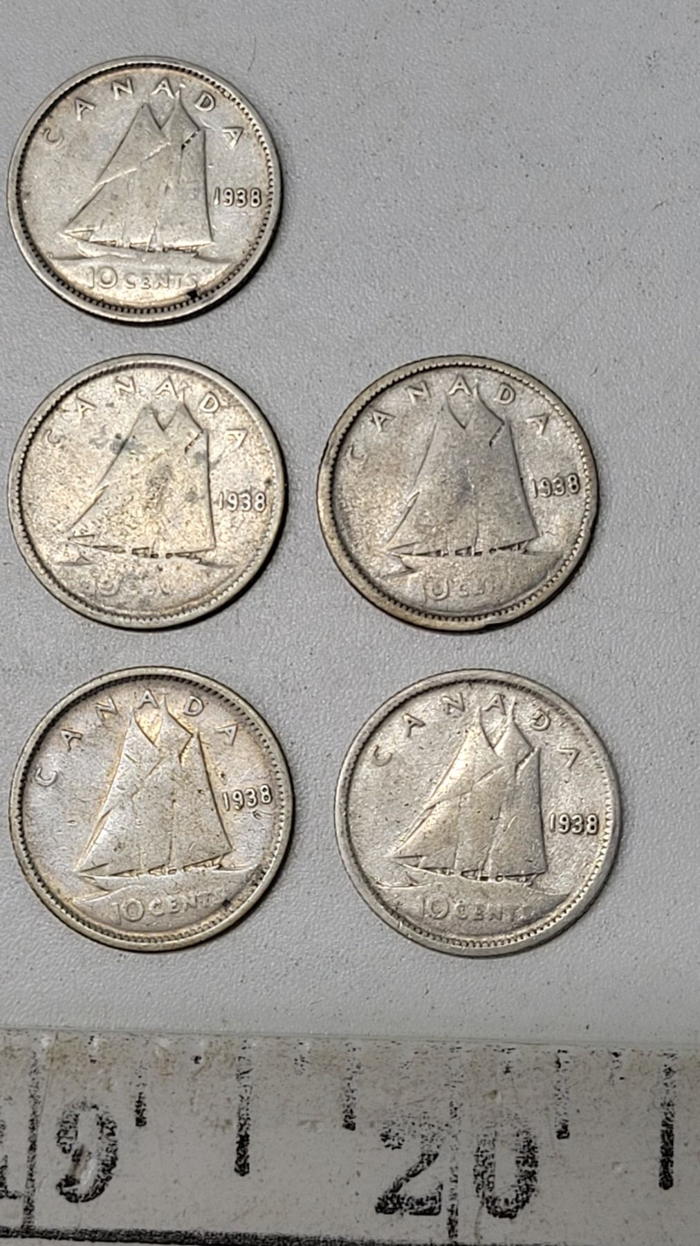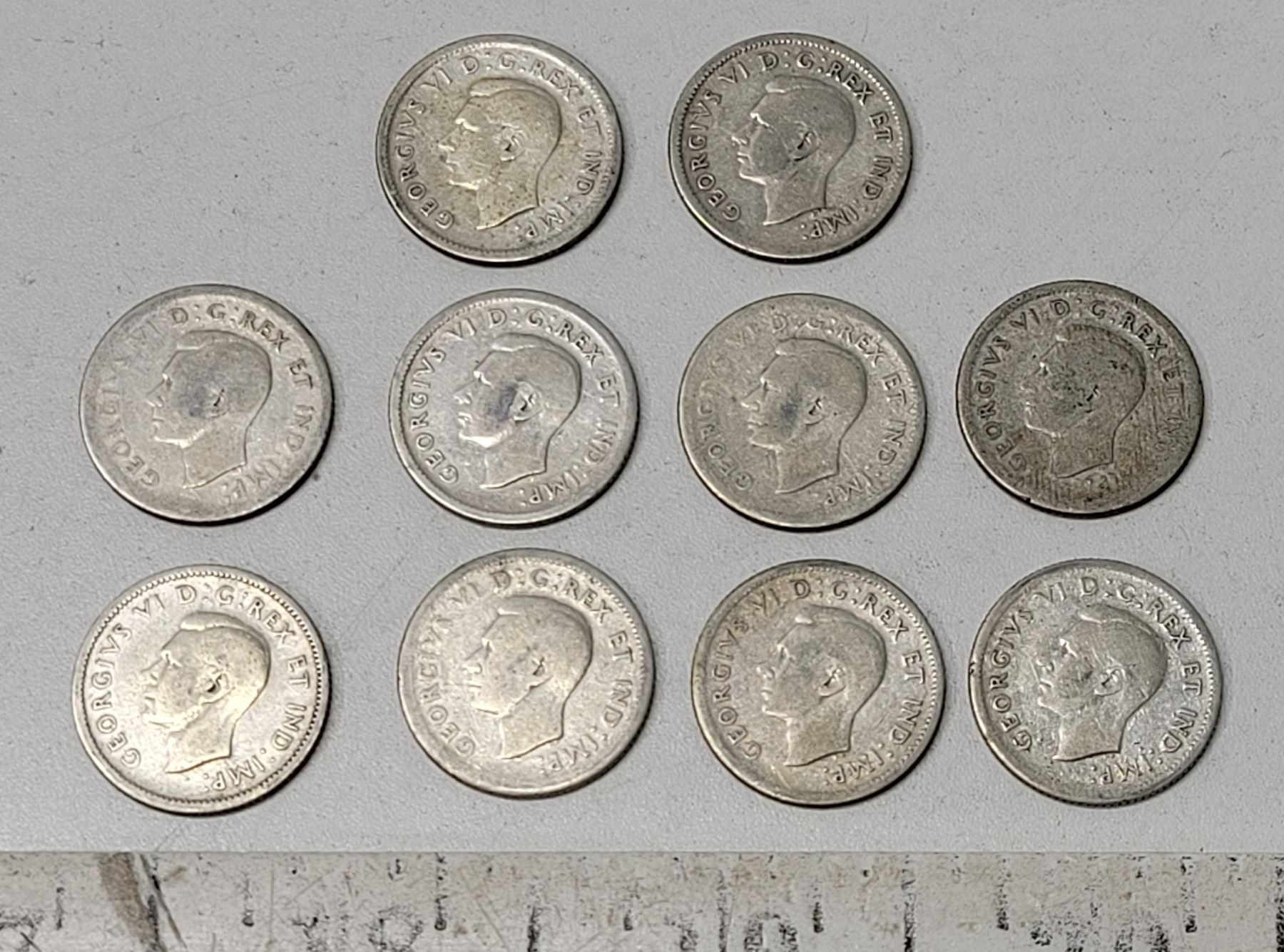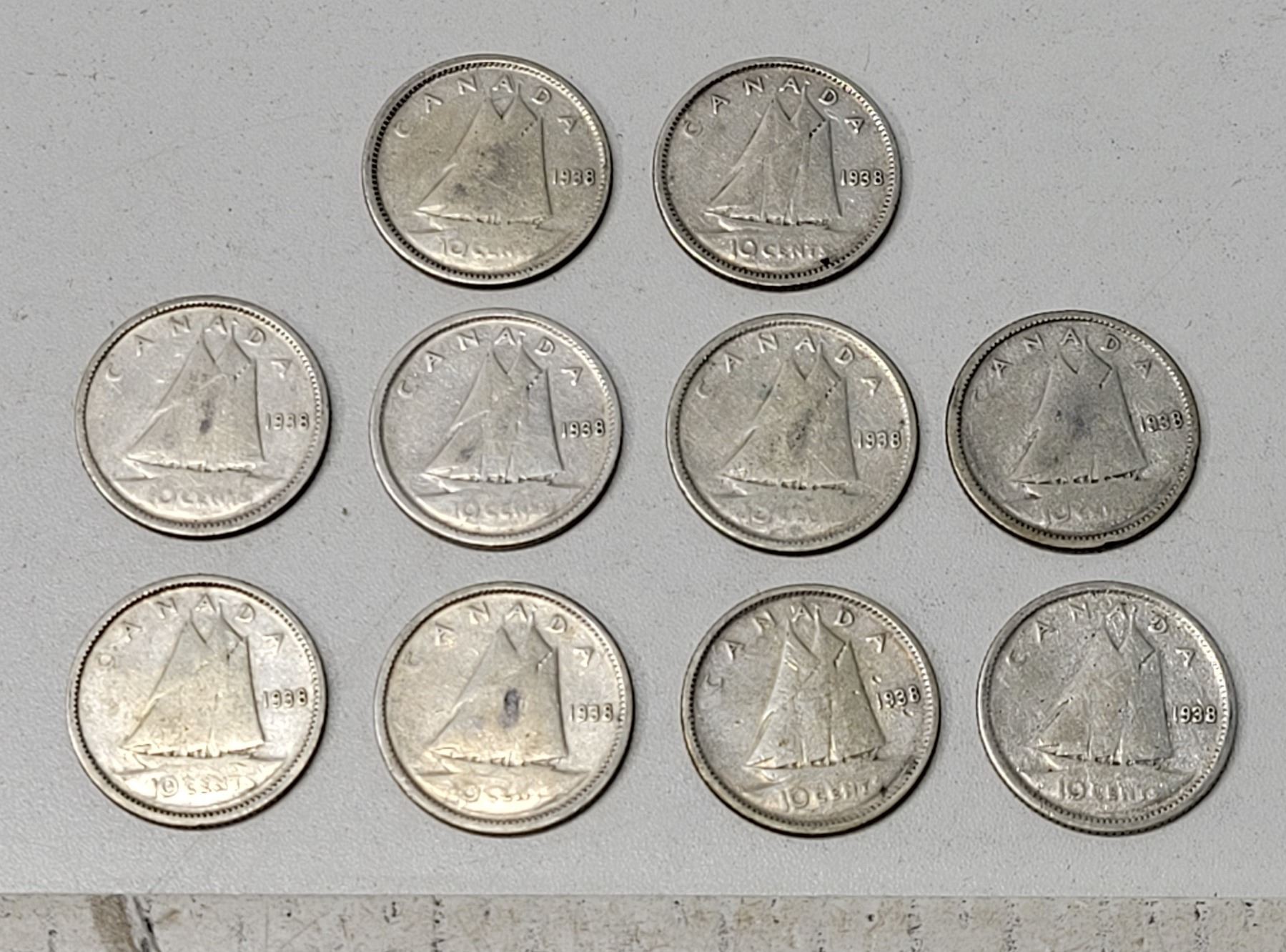 1938 Bag of 10 King George Silver Ten Cent Coins