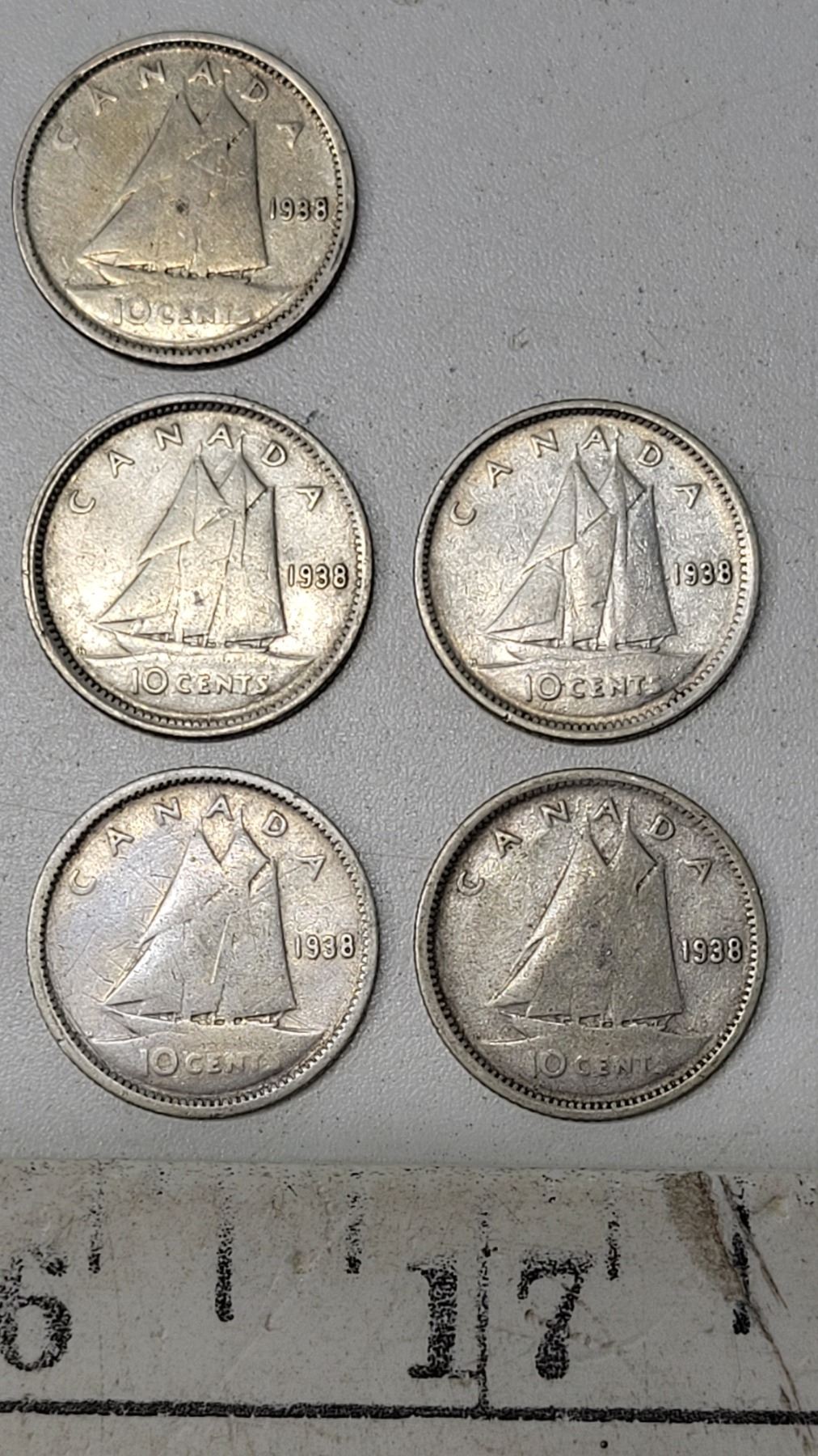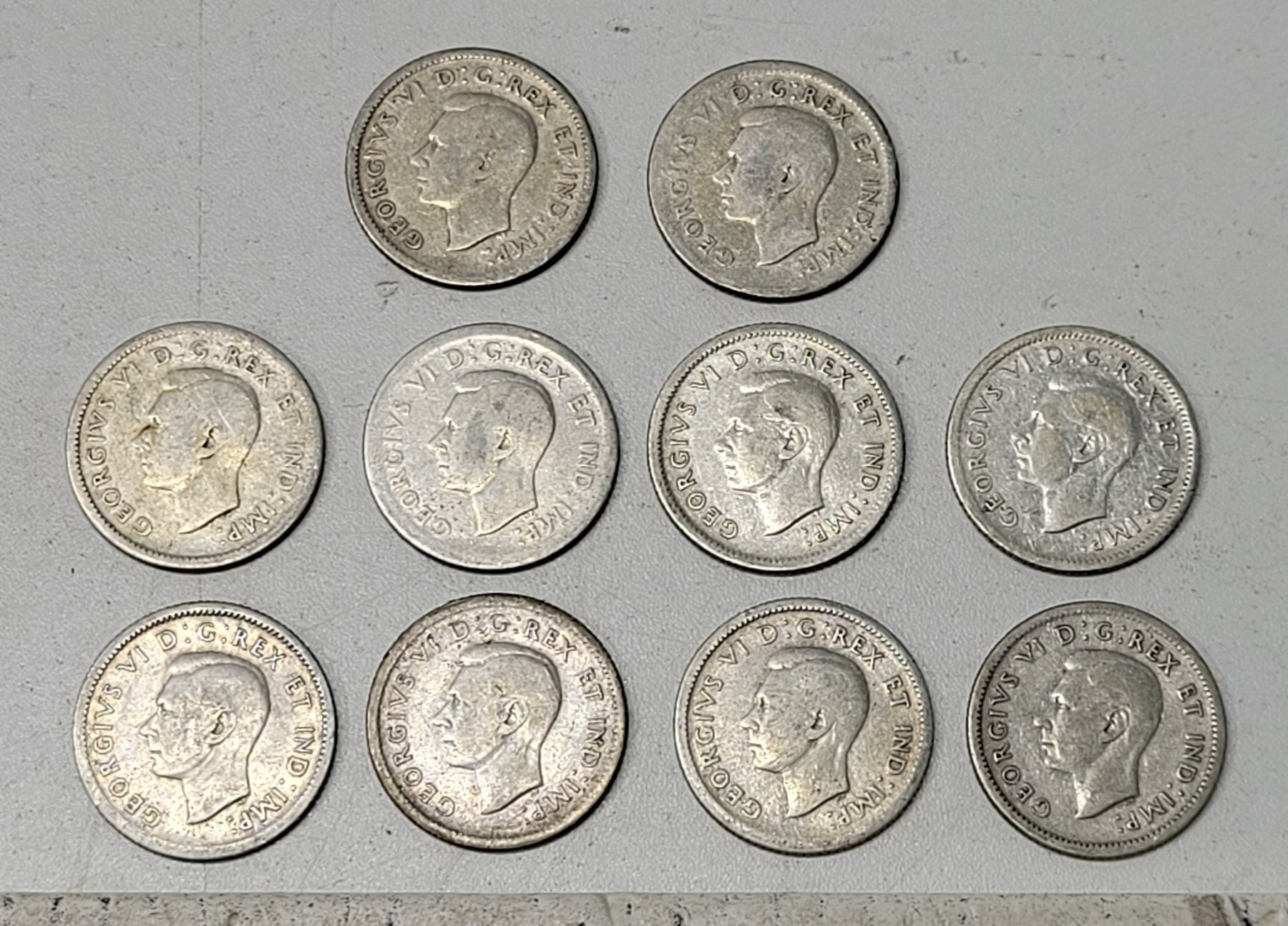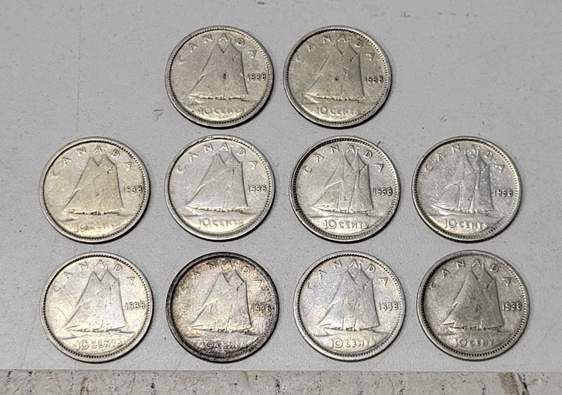 1938 Bag of 10 King George Silver Ten Cent Coins
