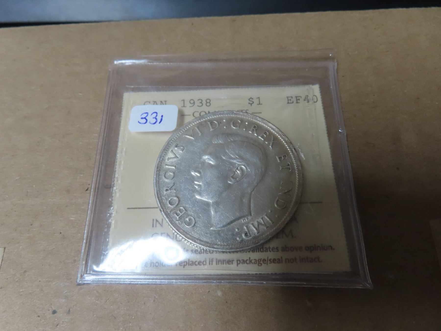 1938 Canada Silver Dollar, EF 40 (ICCS XFO 694)