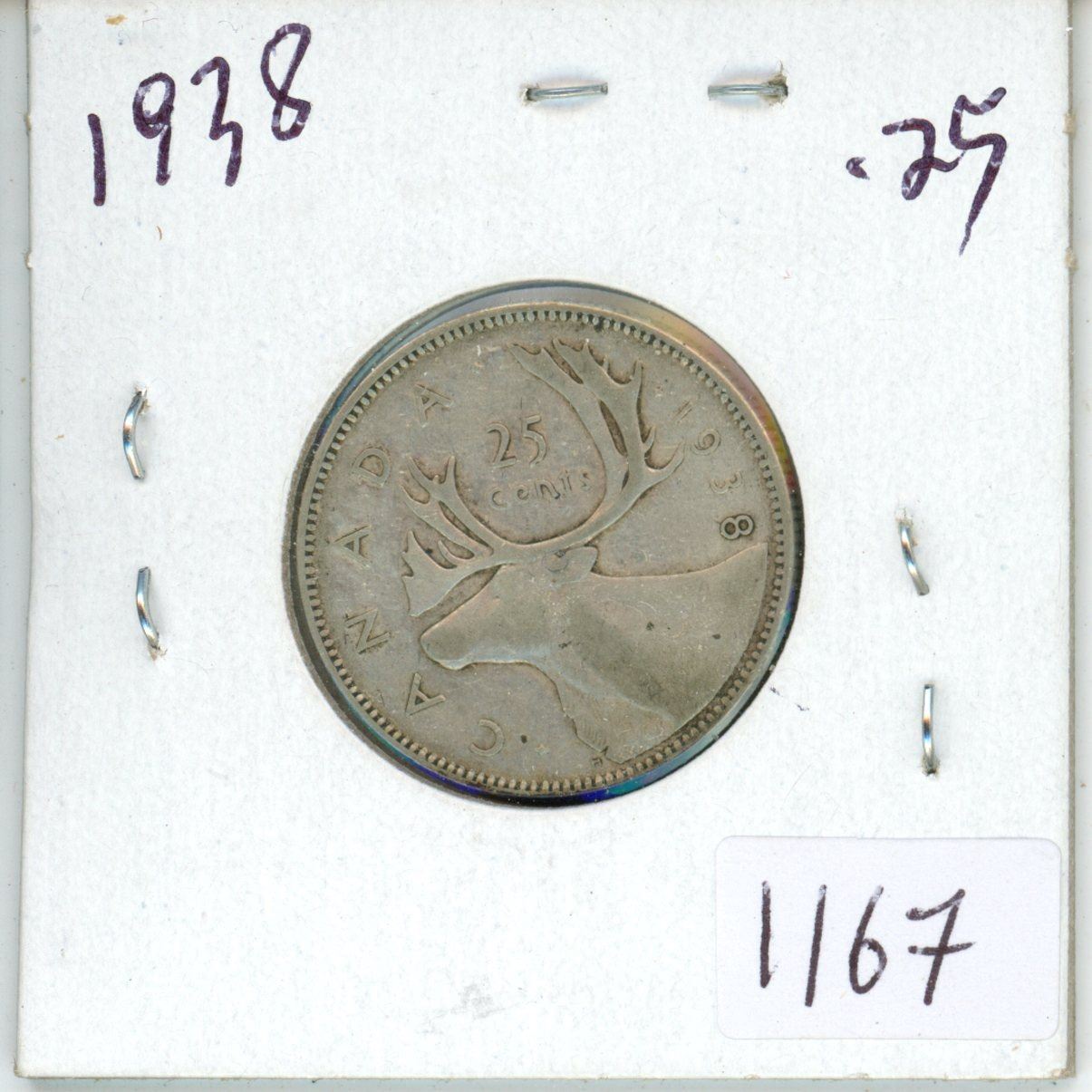 1938 Canadian silver 25 cent coin