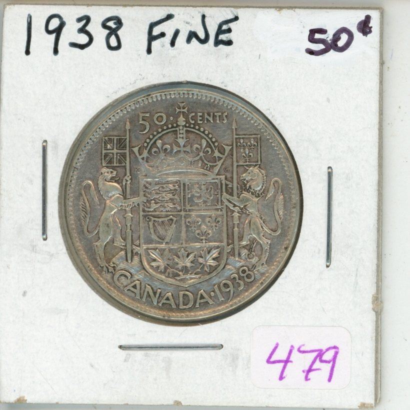 1938 Canadian silver 50 cent coin
