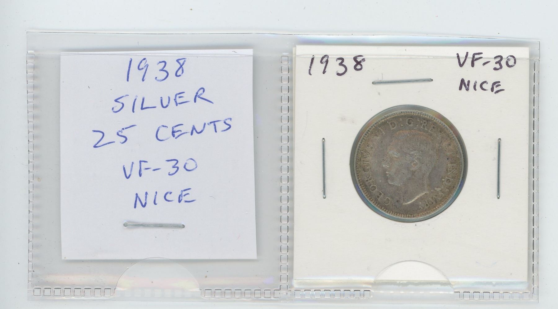 1938 George VI silver 25 cents. VF-30. nice.