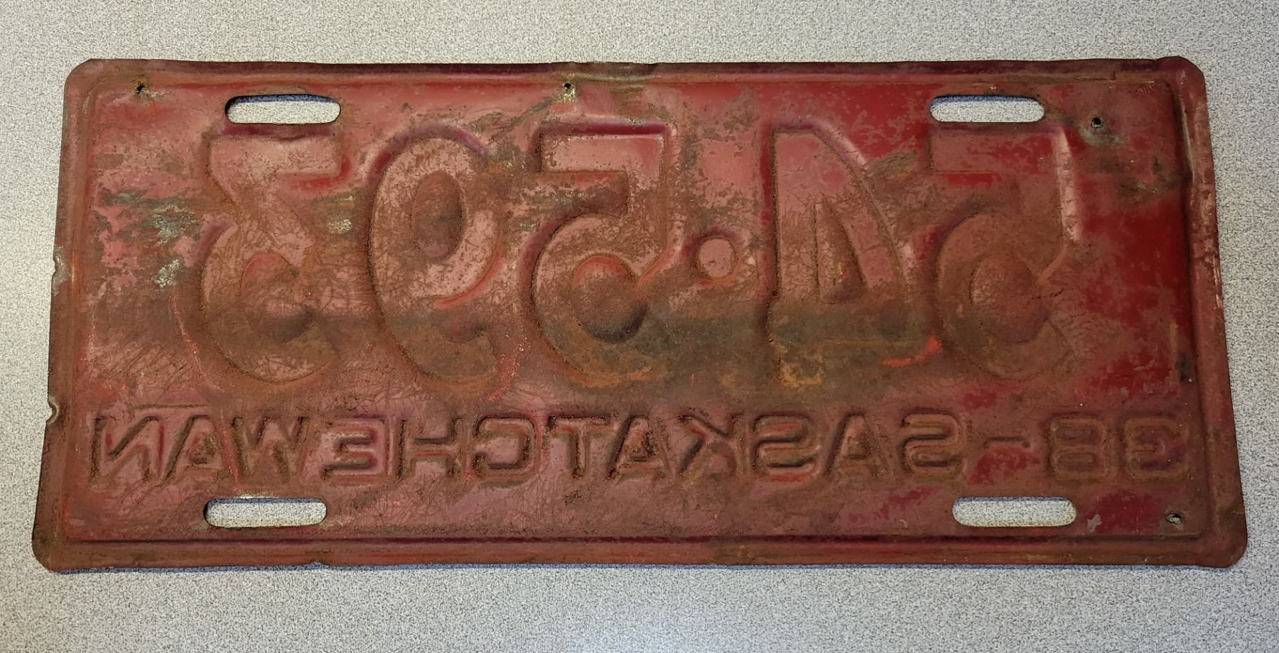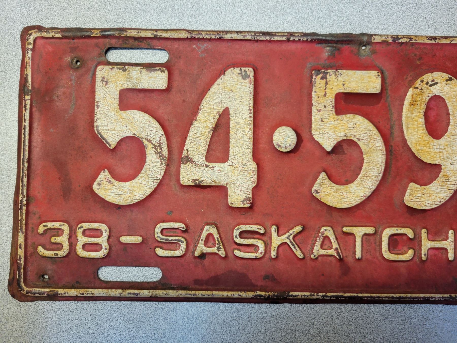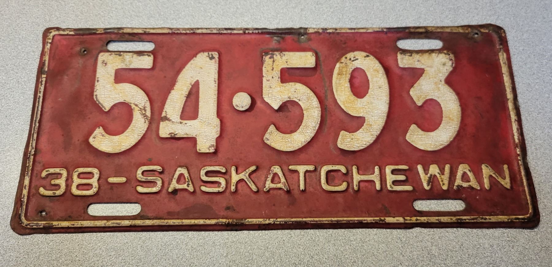 1938 Saskatchewan License plate - 54-593