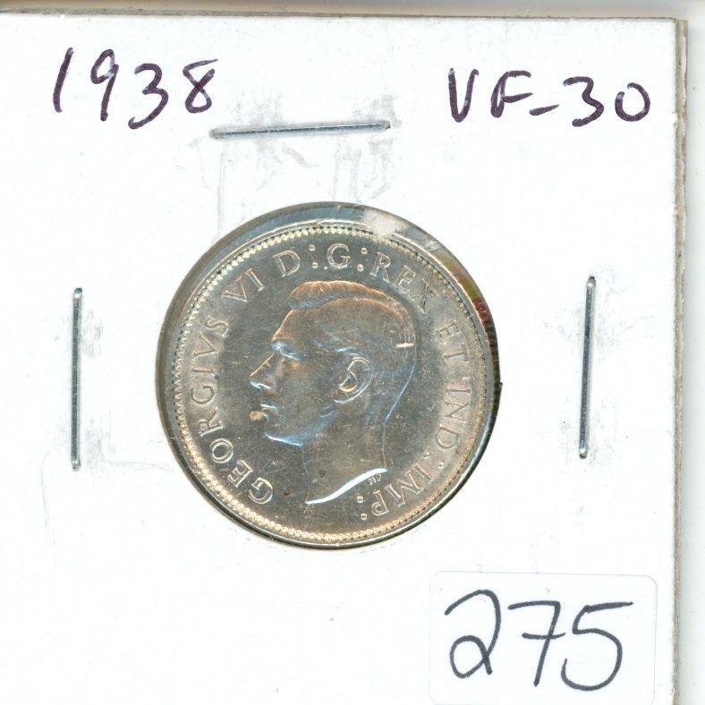 1938 Silver 25 Cents. George VI. VF-30. Nice.