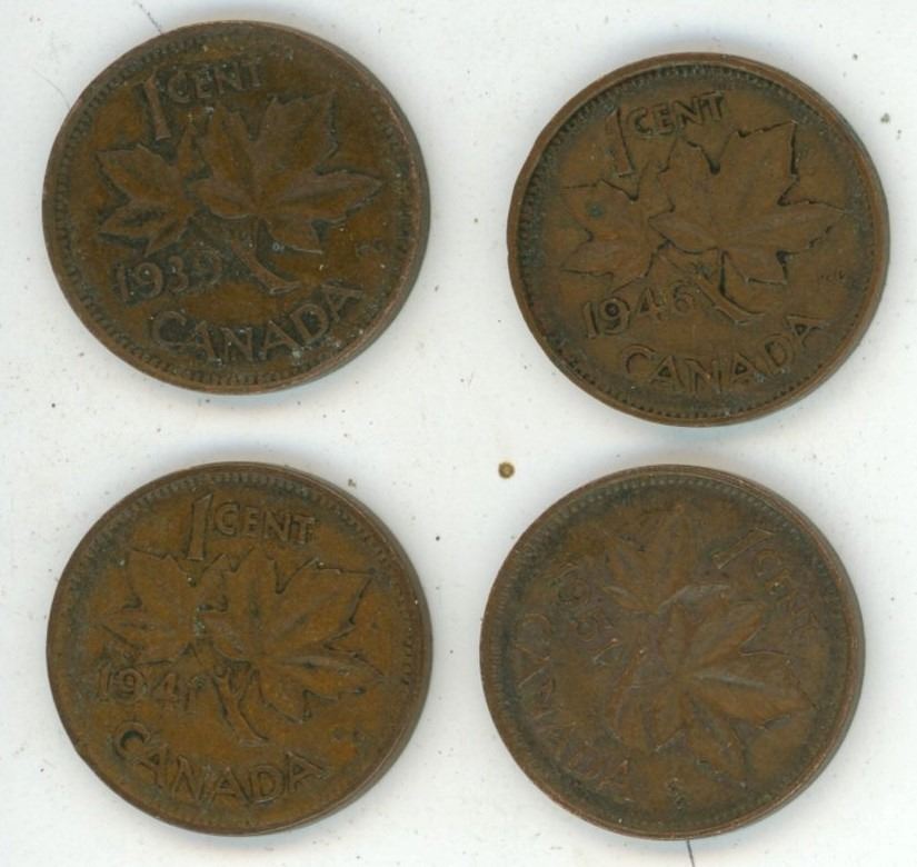 1939, 1941, 1946, 1951 Canada pennies (assorted
