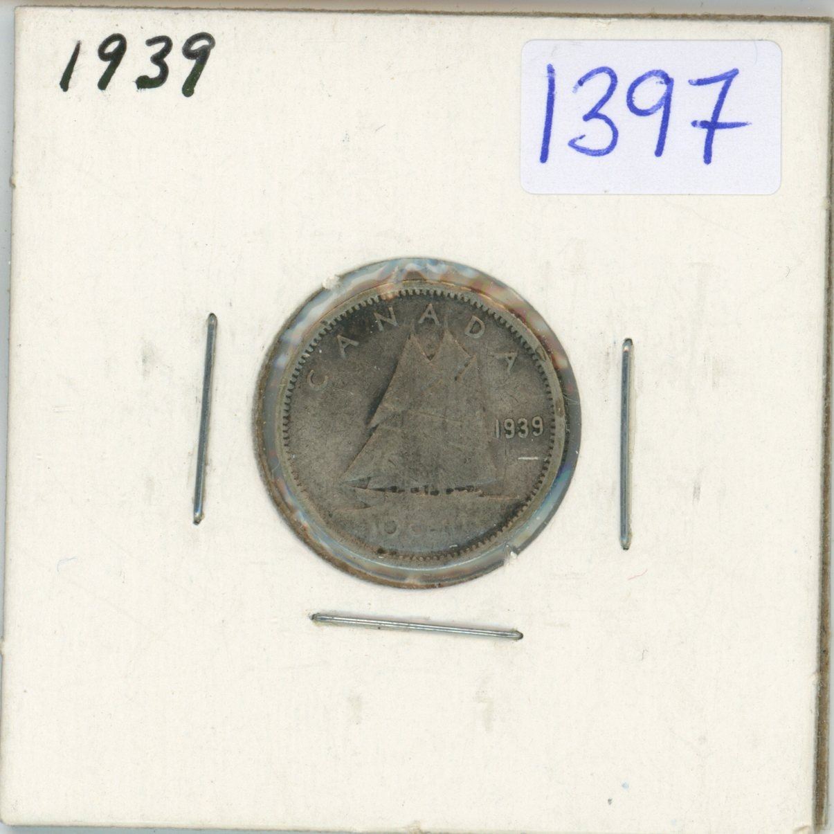 1939 Canadian 10 cent silver coin