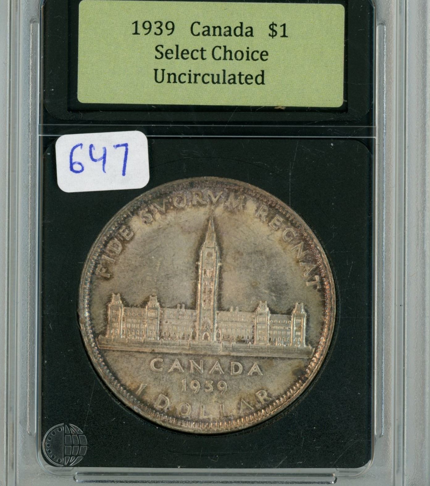 1939 Royal Visit Canadian Silver Dollar. CCC certified & graded Select Choice Uncirculated. Nicely Toned.