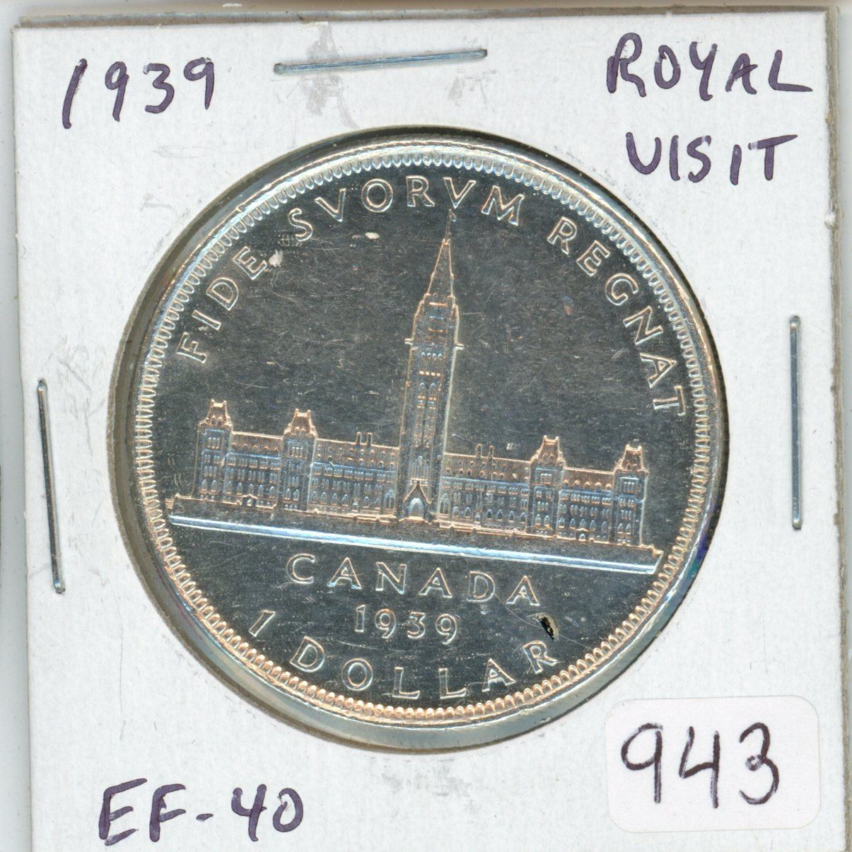 1939 Royal Visit Canadian Silver Dollar. EF-40.