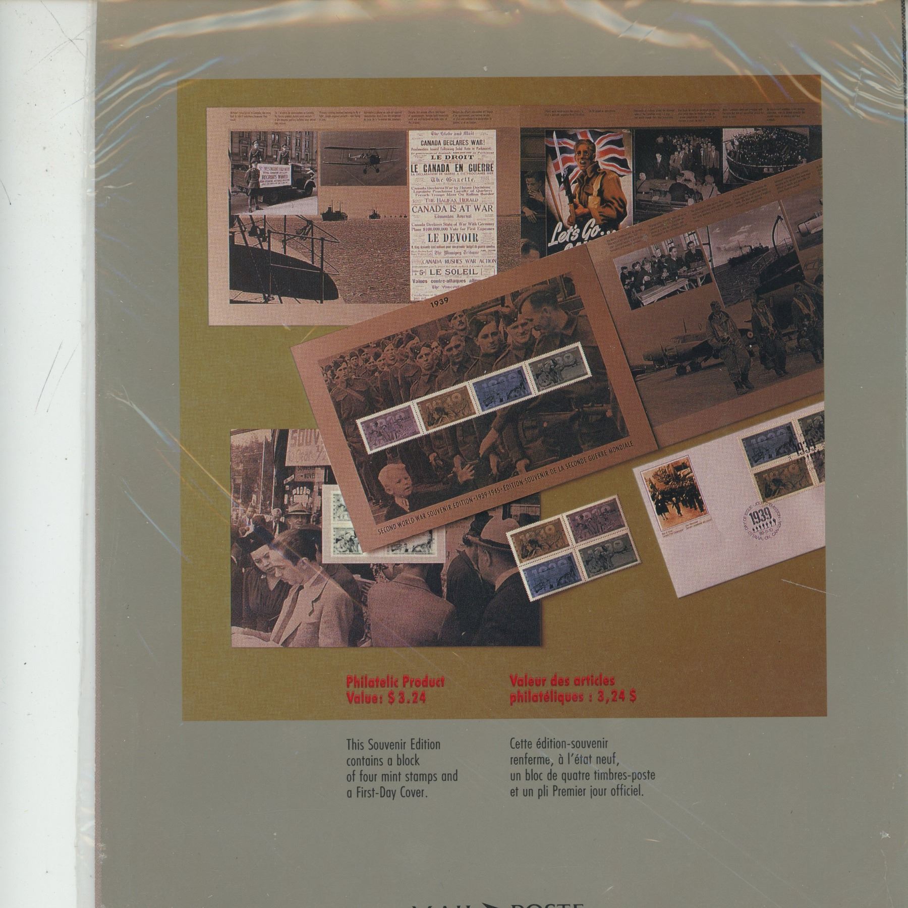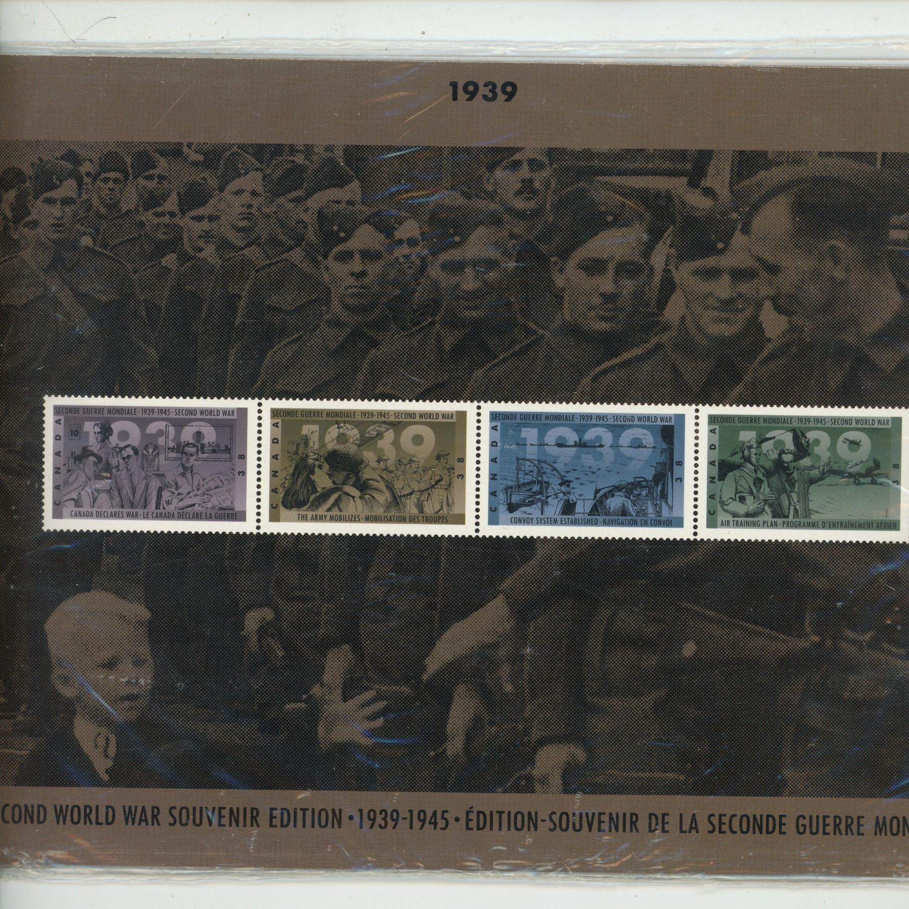 1939 Second World War Commemorative 38 Cent Stamps. Canada Declares War, Army Mobilization, Convoy System & Air Training. Housed in its unopened Canada Post Packaging. Mint.
