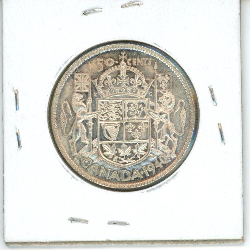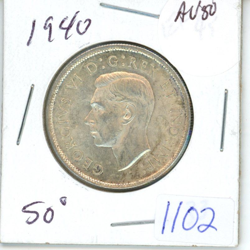 1940 Canadian 50 cent coin - AU50