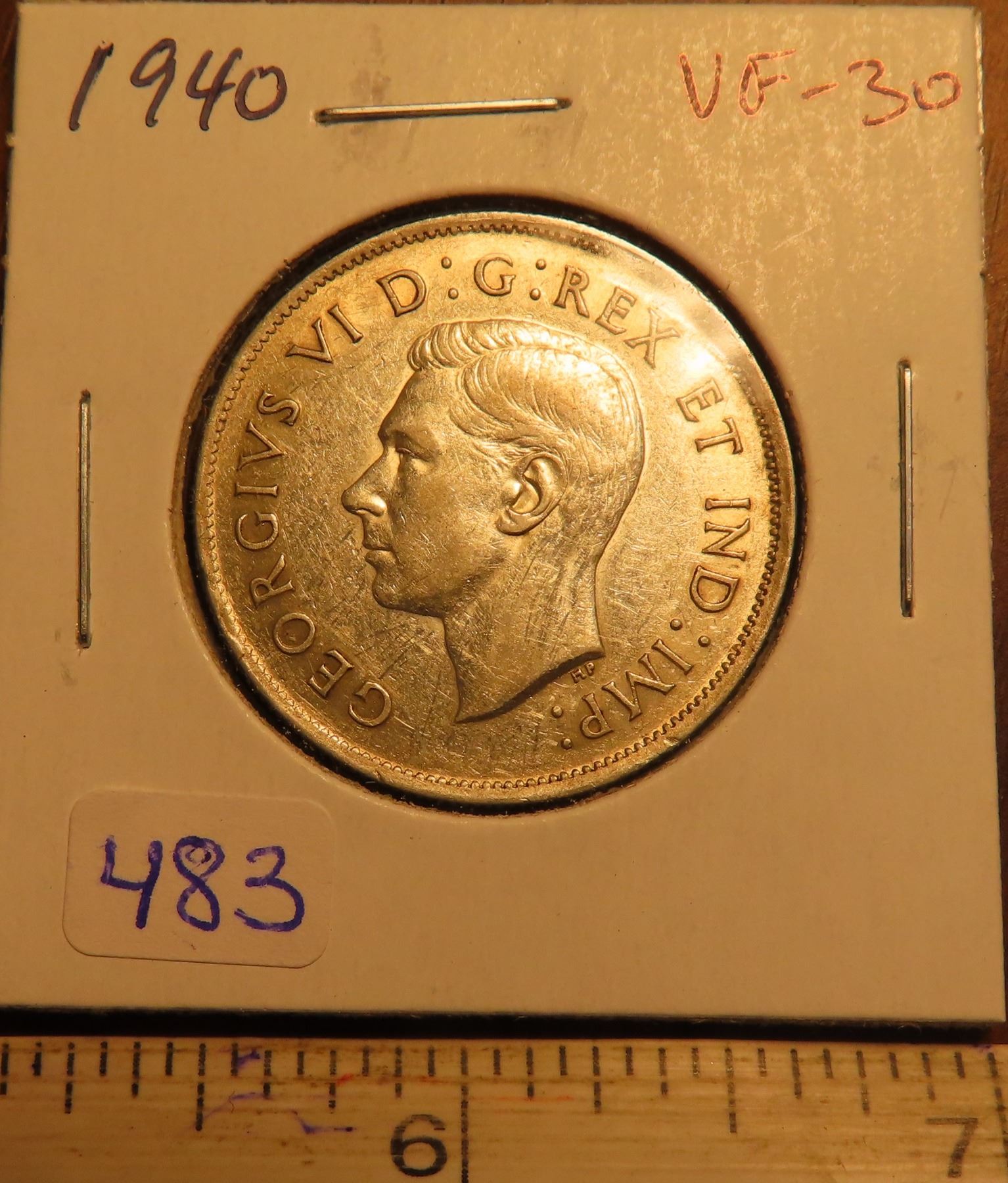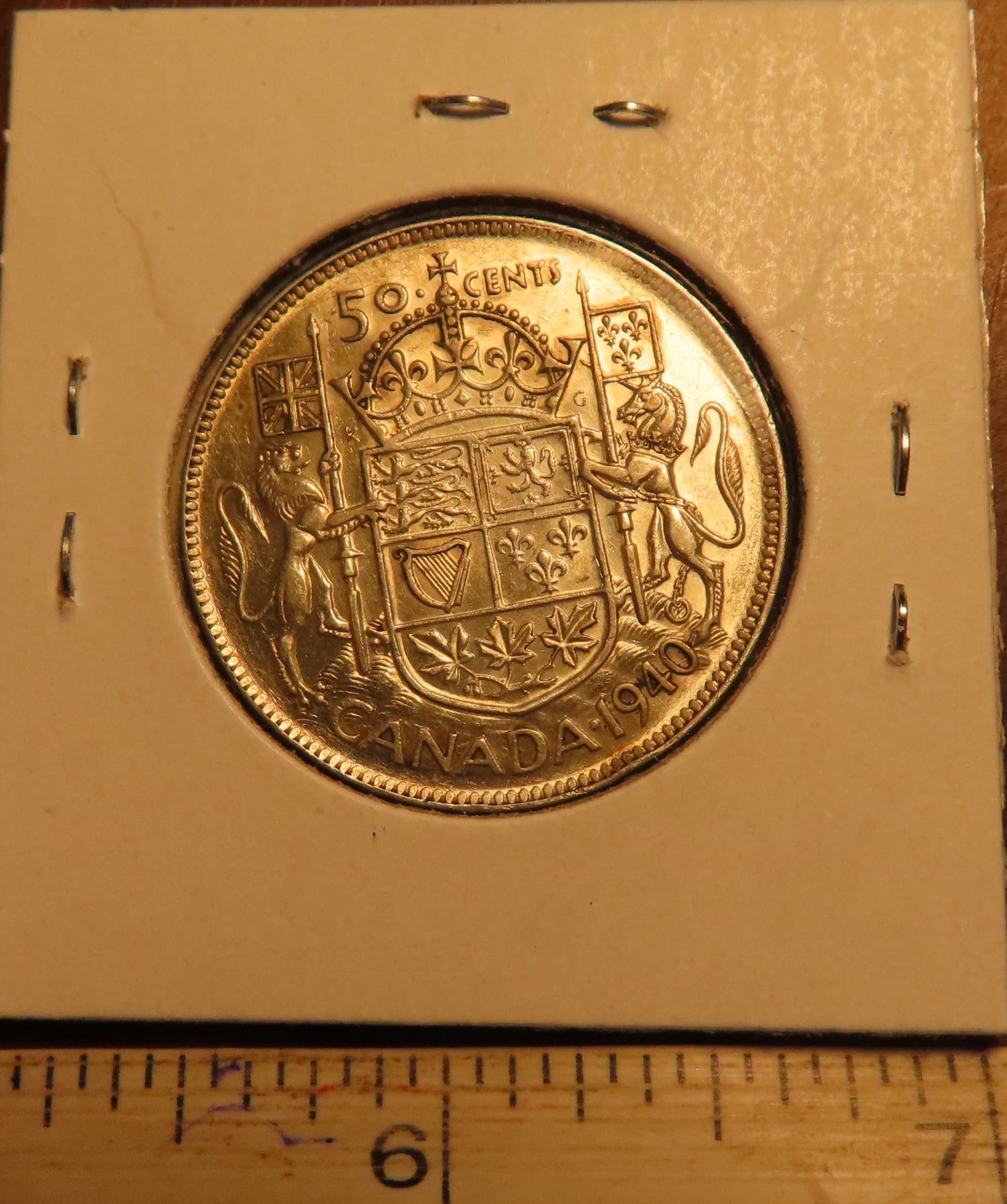 1940 Canadian Silver 50 Cents. Issued during World War II. VF-30.