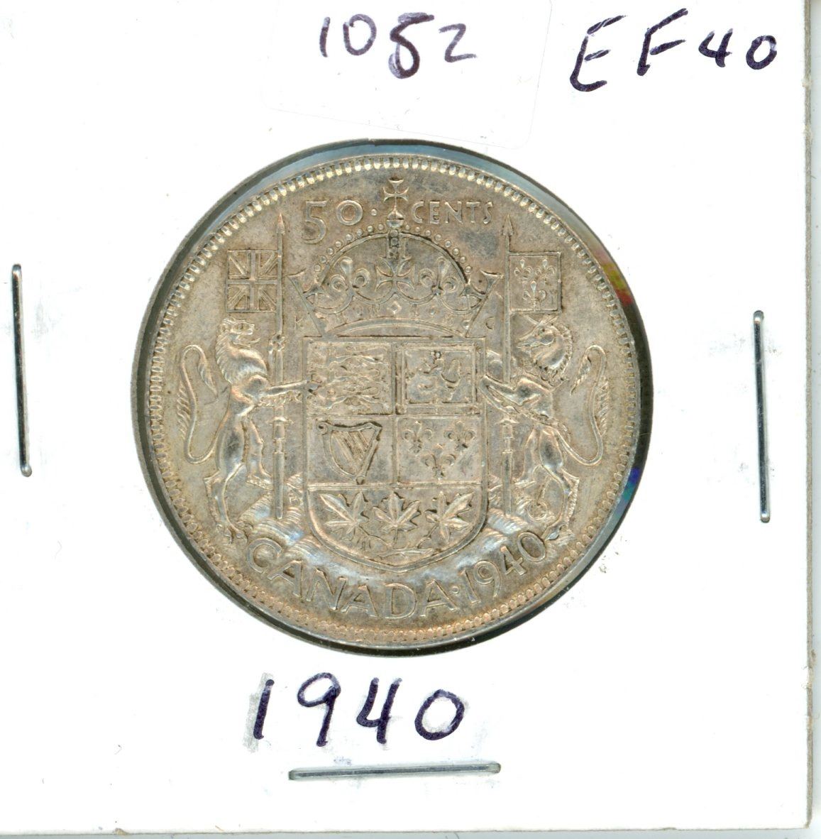 1940 EF40 Canadian Silver 50 cent Coin - King George VI