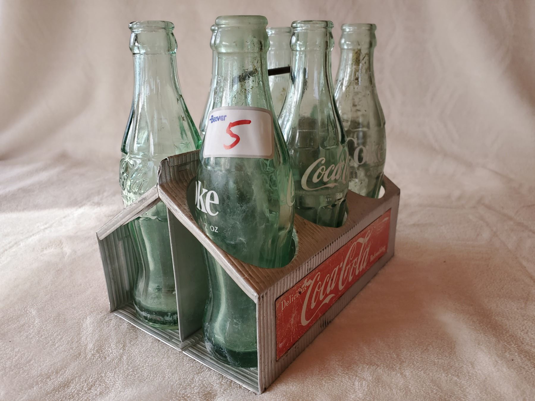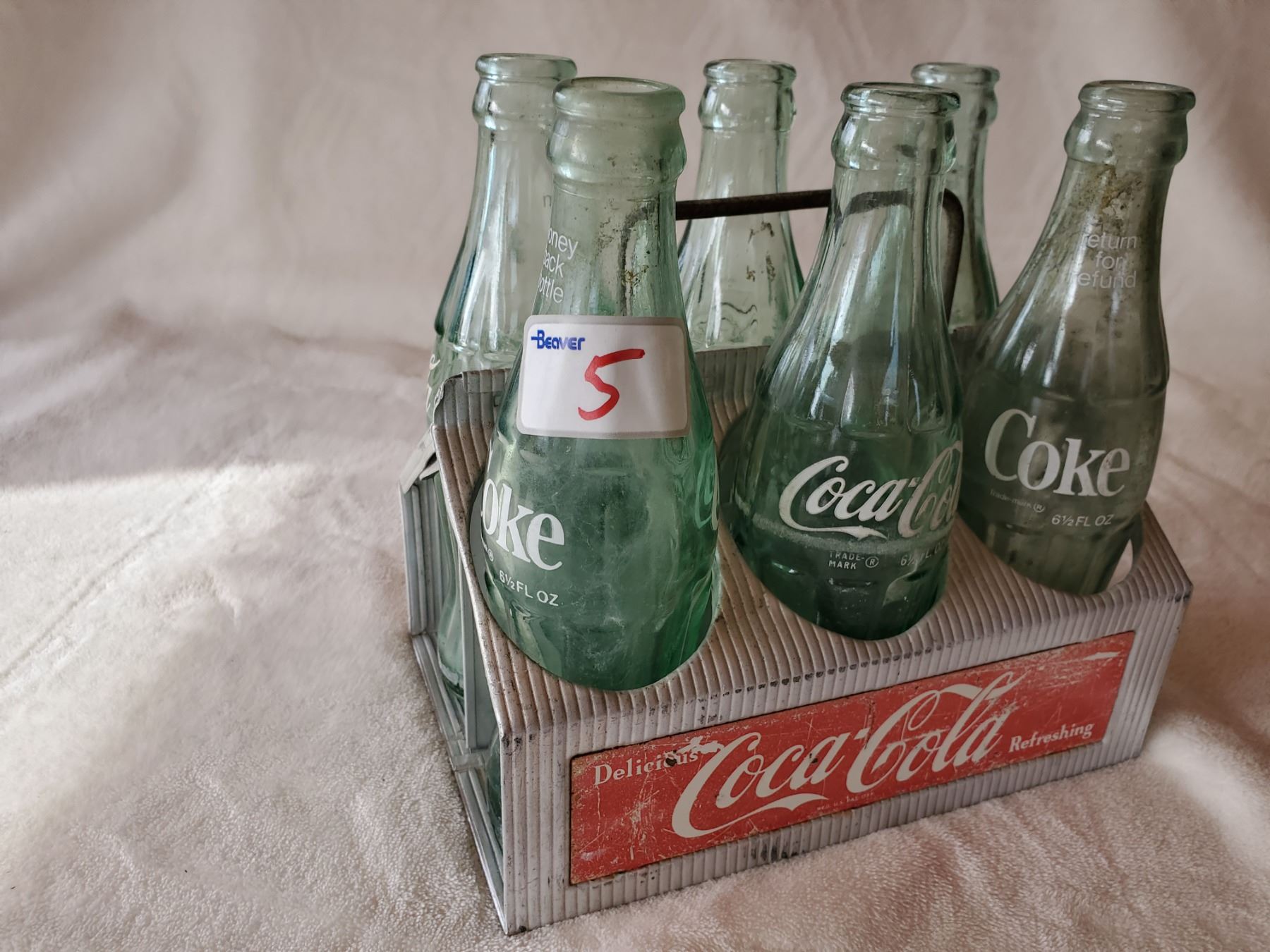 1940'S COCA-COLA TIN 6 PACK WITH GREEN BOTTLES