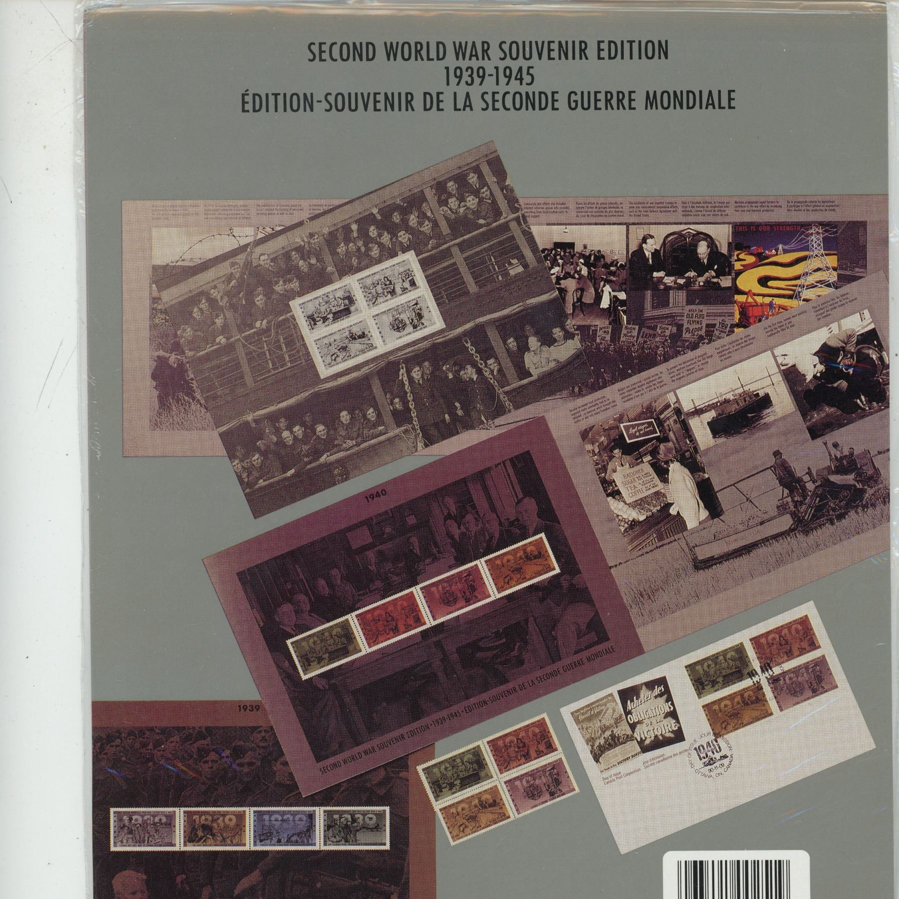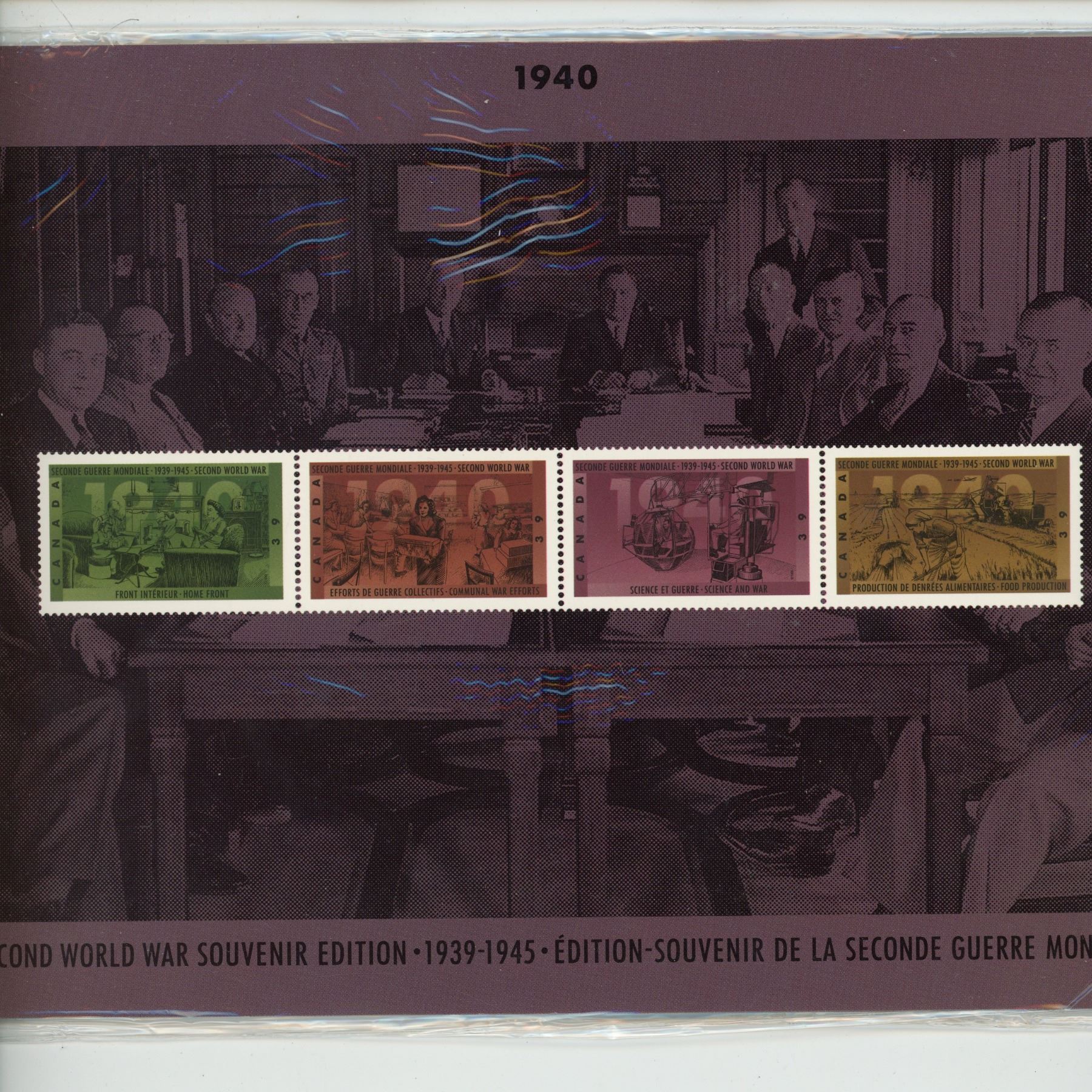 1940 Second World War Commemorative 39 cent Stamps. Home Front, War Efforts, Science & War, & Food Production. Housed in its unopened Canada Post packaging. Mint.