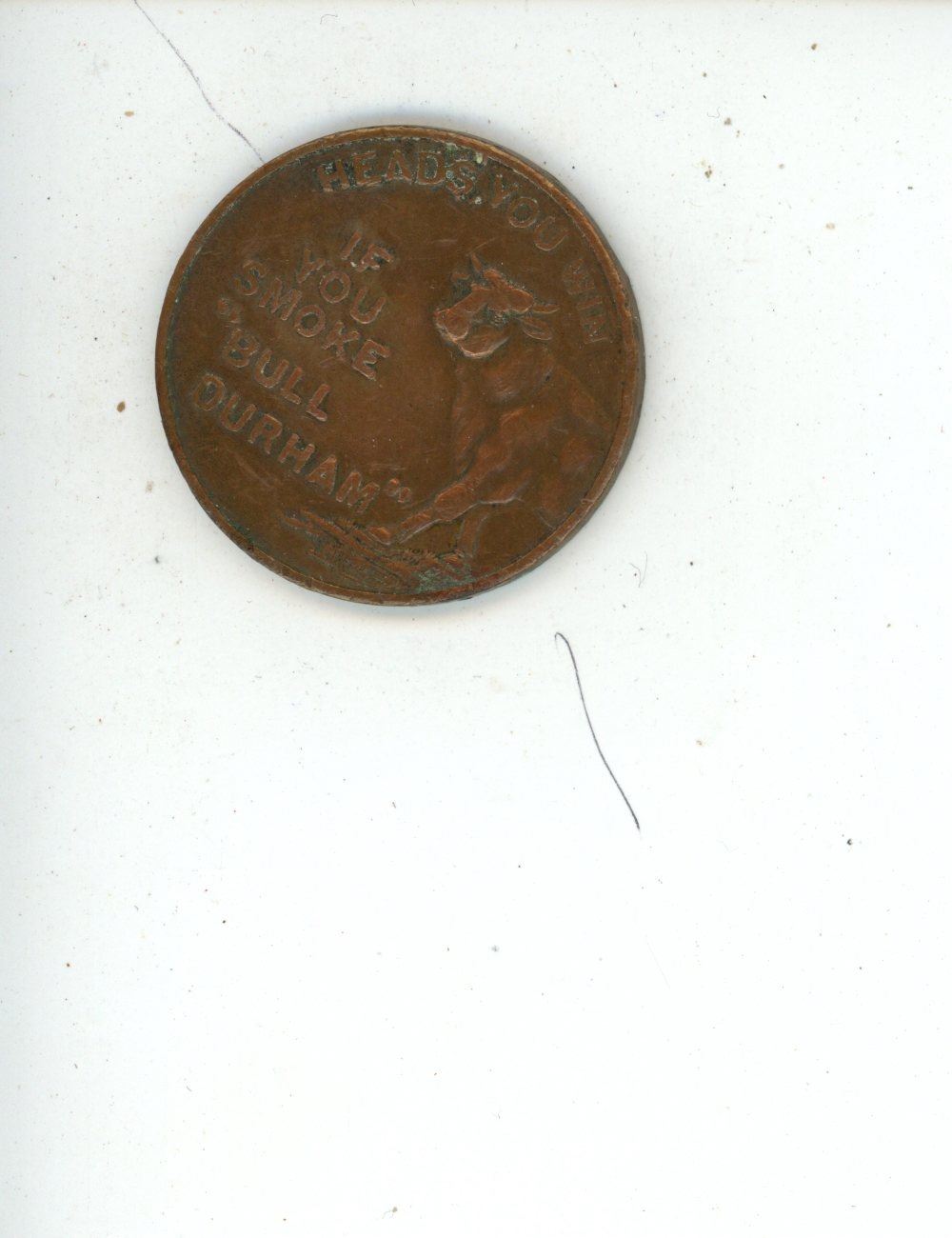1940's Bronze Token "Heads You Win, Tails You Lose" Bull Ourham, Bull Durham