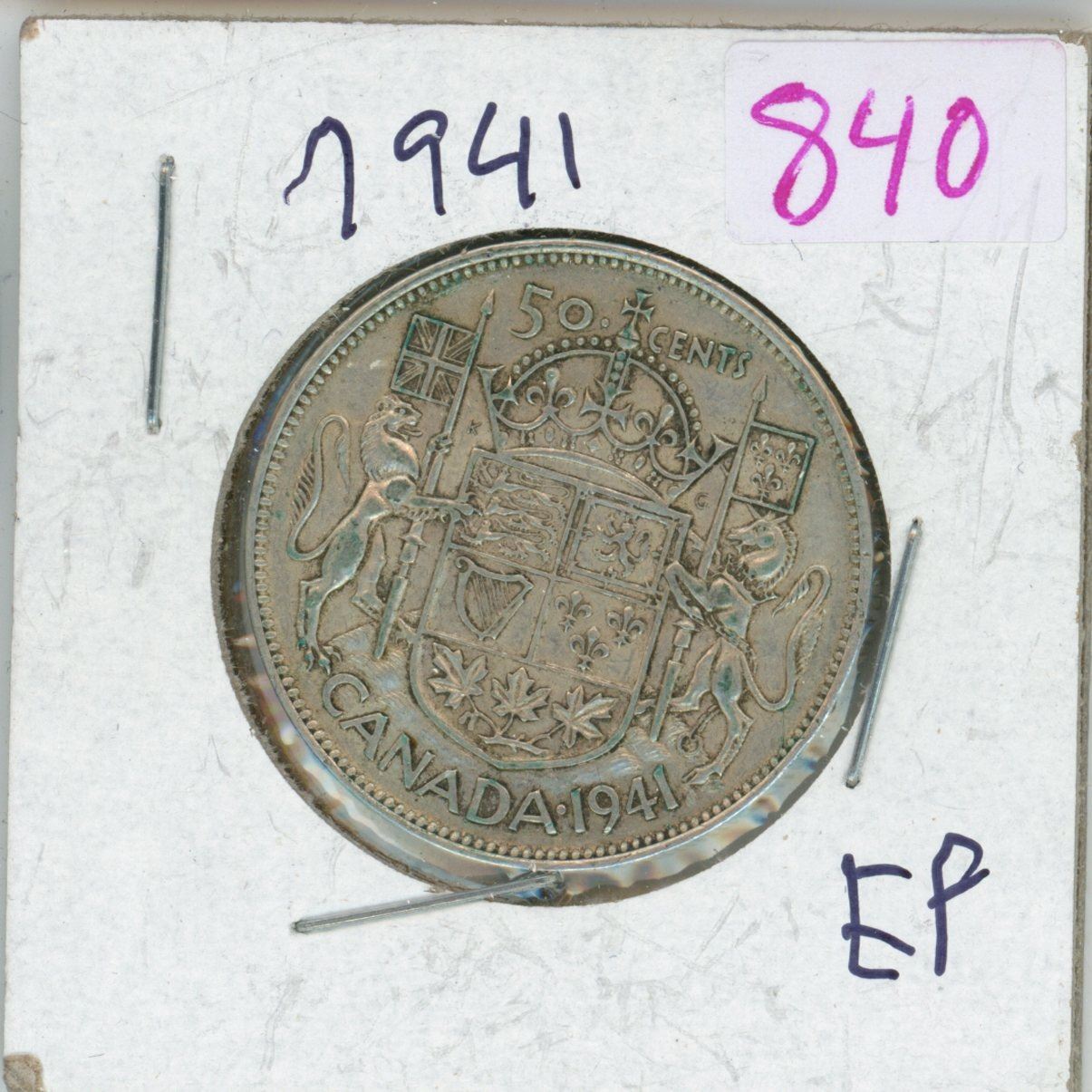 1941 Canadian 50 cent silver coin