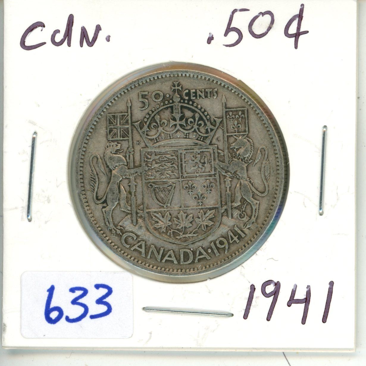 1941 Canadian silver 50 cent coin