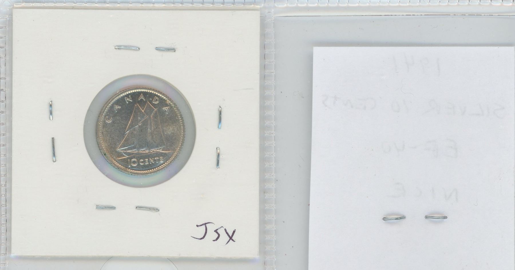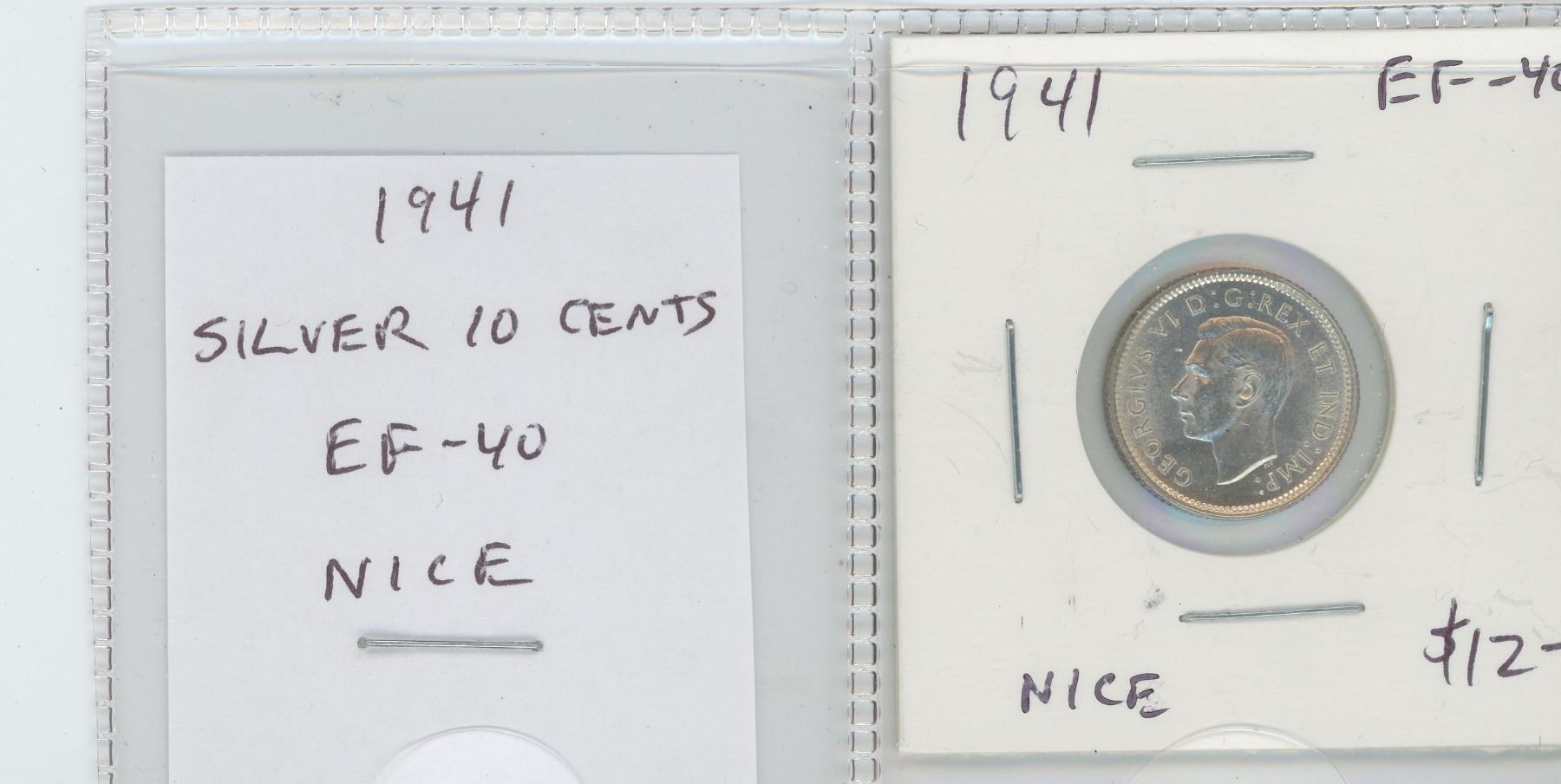 1941 GEORGE VI SILVER 10 CENTS. EF-40. NICE.