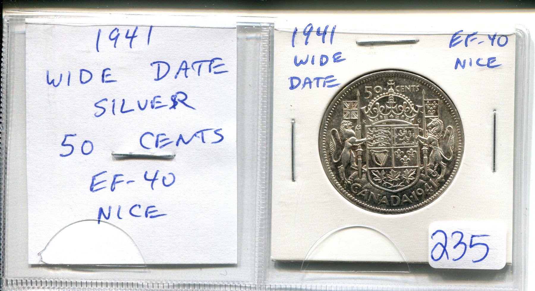 1941 Wide Date Silver 50 cents. EF-40. Nice.