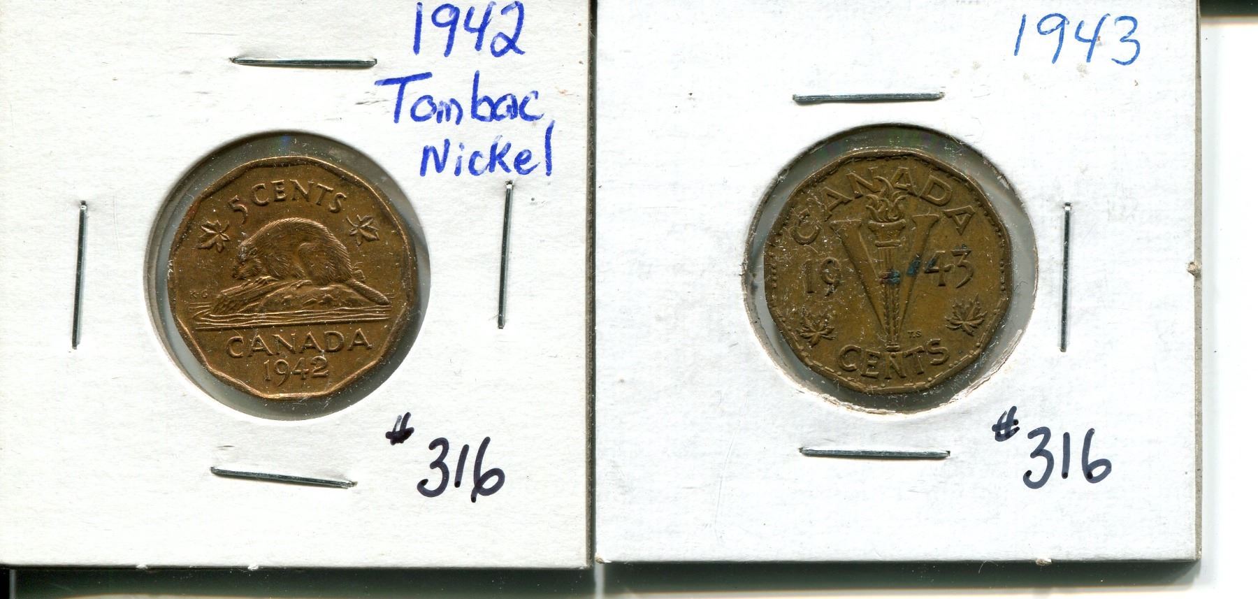 1942, 1943 tombac 5 cents