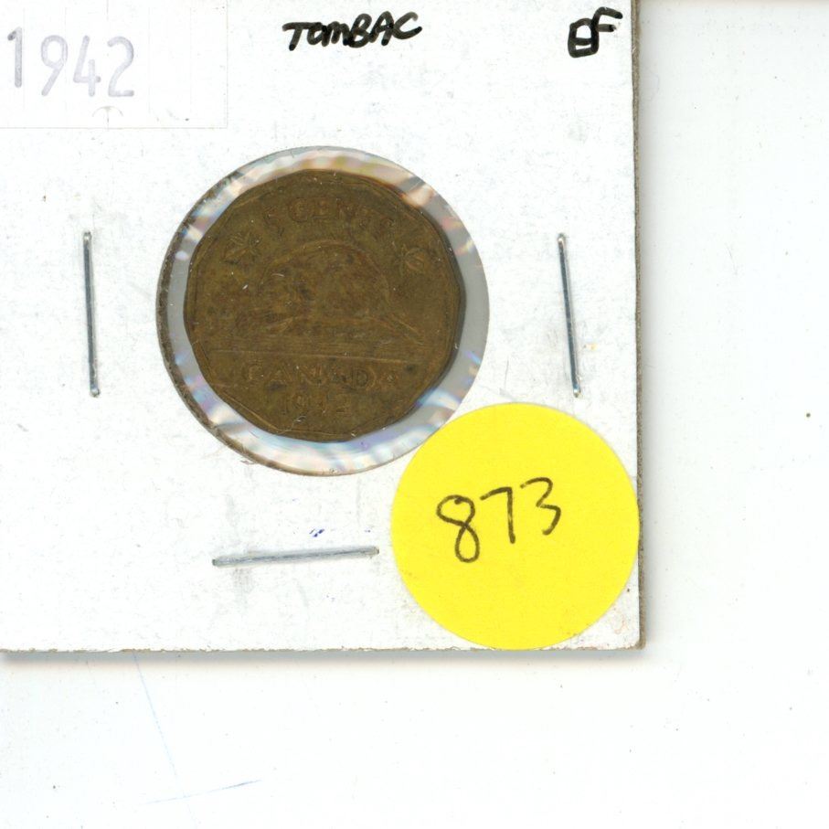 1942 Canadian 5 Cent Coin Tombac EF