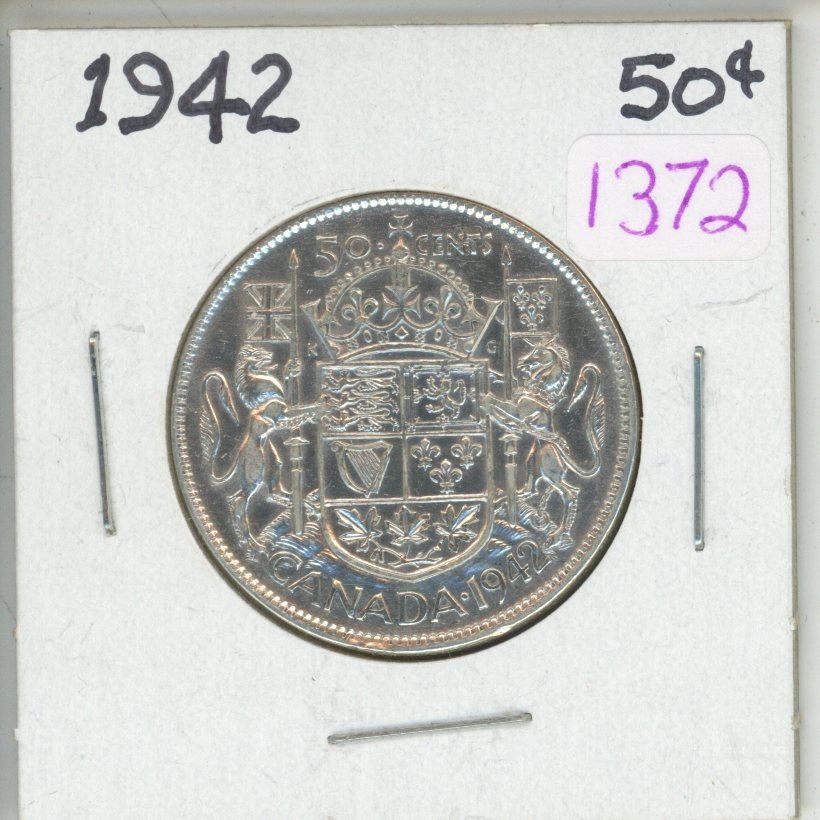 1942 Canadian silver 50 cent coin