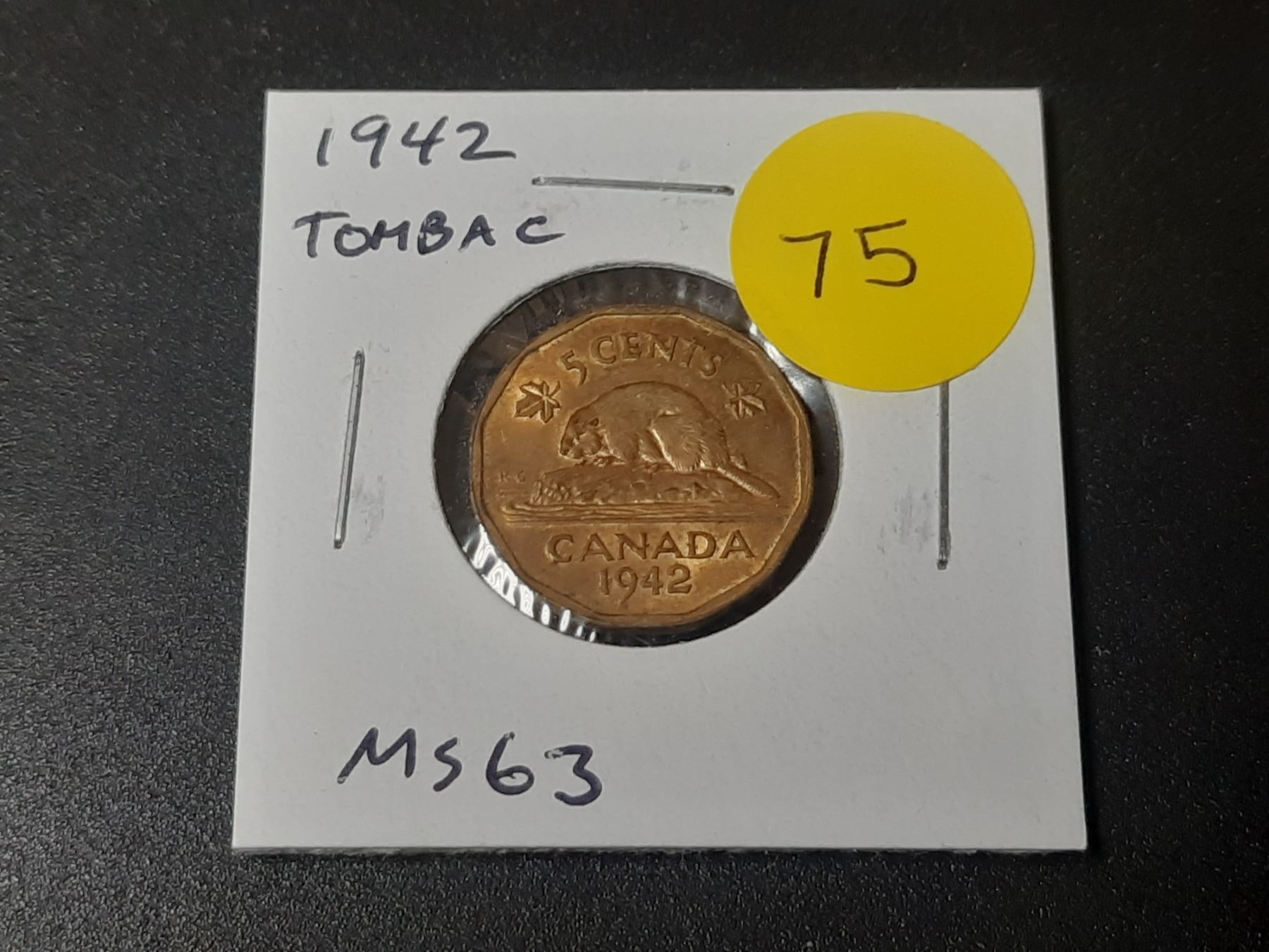 1942 Tombac 5 Cents. The first Tombac issued with a Beaver. MS63.