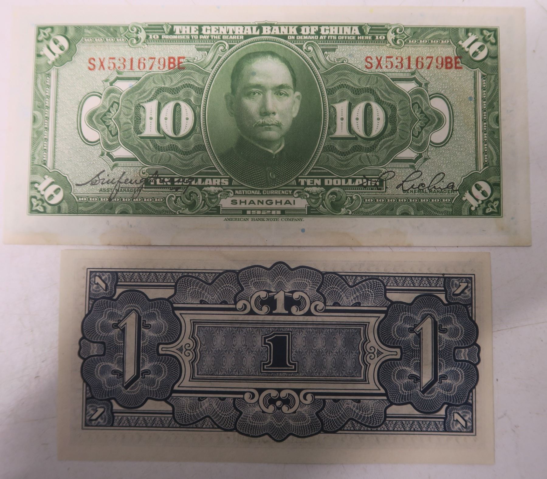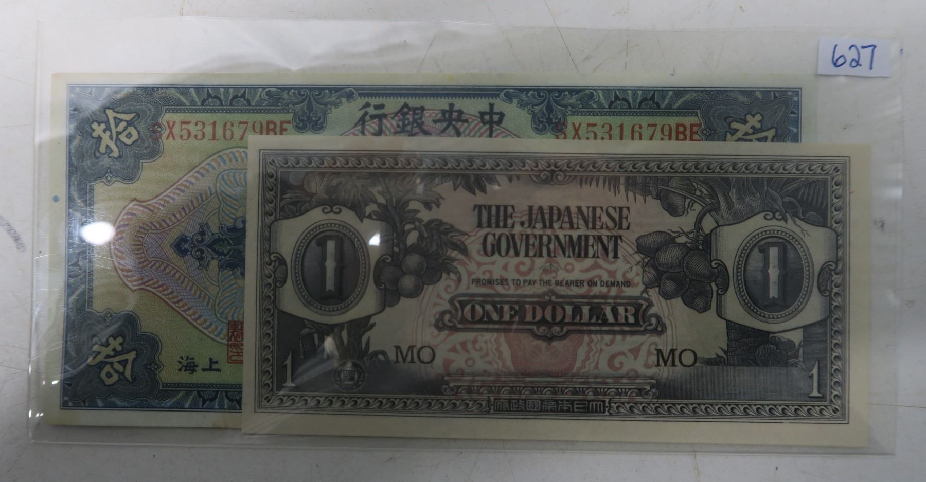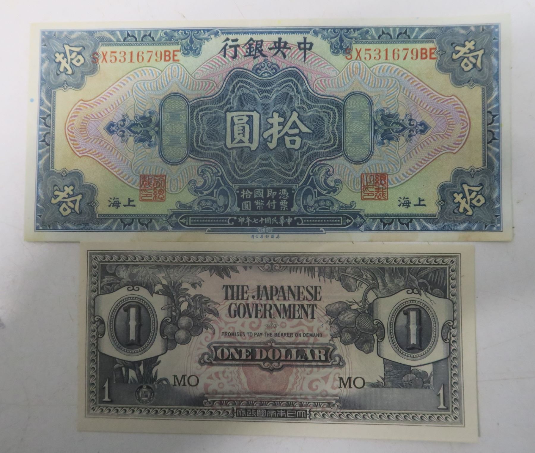 1942 japan occupation of malaya $1 UNC & 1928 bank of china 10 dollars shanghai