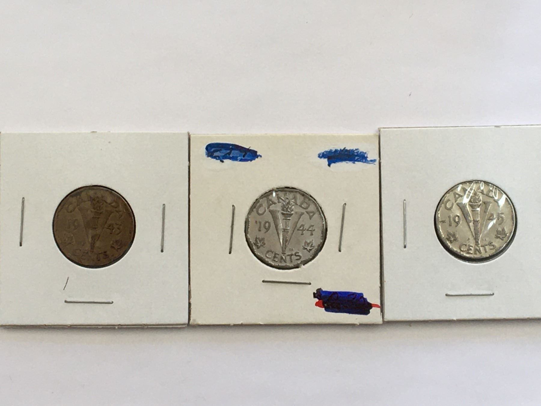 1943 1944 1945 CANADA NICKEL TOMBAC