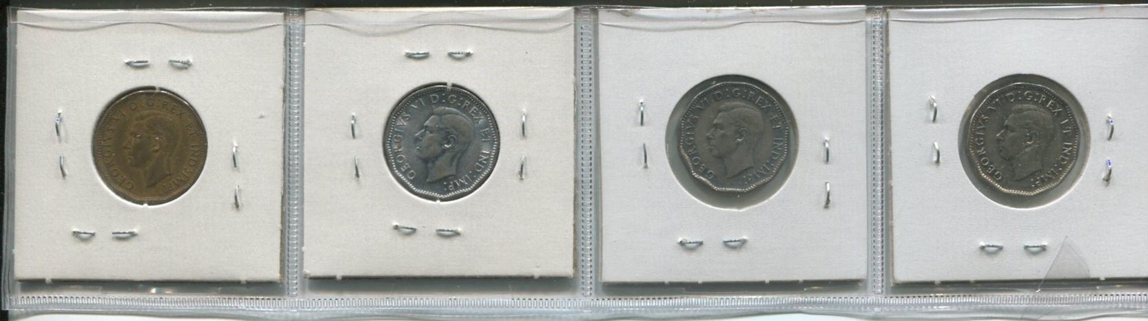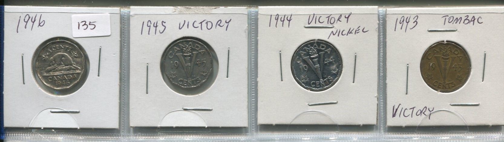 1943 & 46 beaver and 1944 & 45 victory nickel,4-Canadian 5 cent coins,King George VI