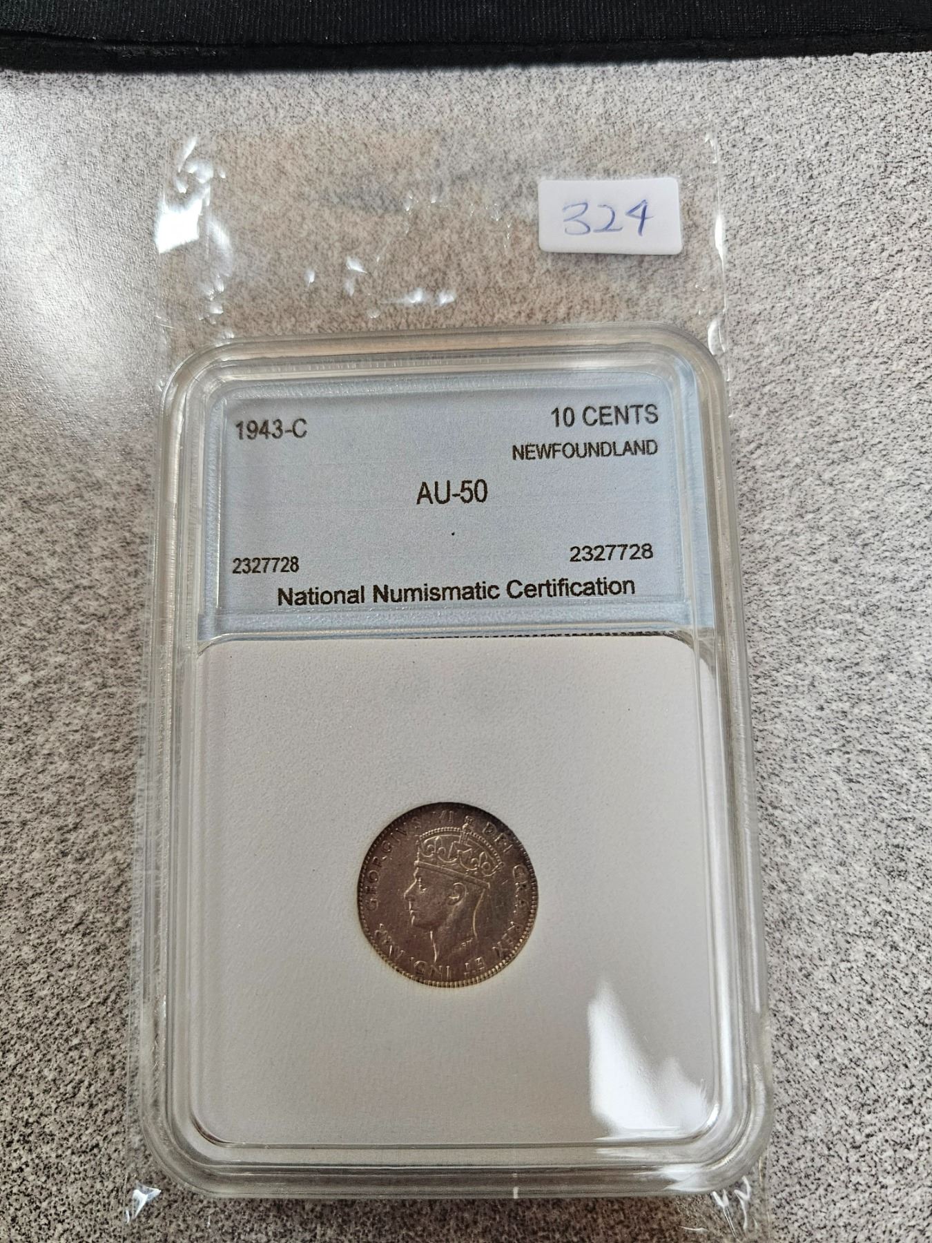 1943-C Newfoundland graded AU-50 ten cents 10¢