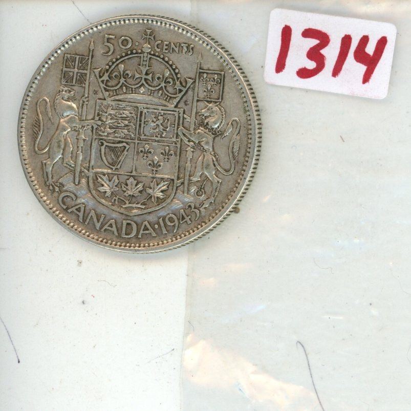 1943 Canada silver 50 cent coin - very good condition