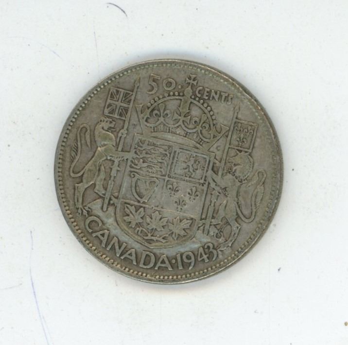 1943 Canadian silver 50 cent coin