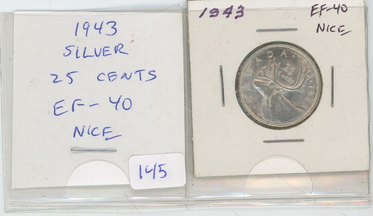 1943 George VI Silver 25 Cents. World War II issue. EF-40. Nice.