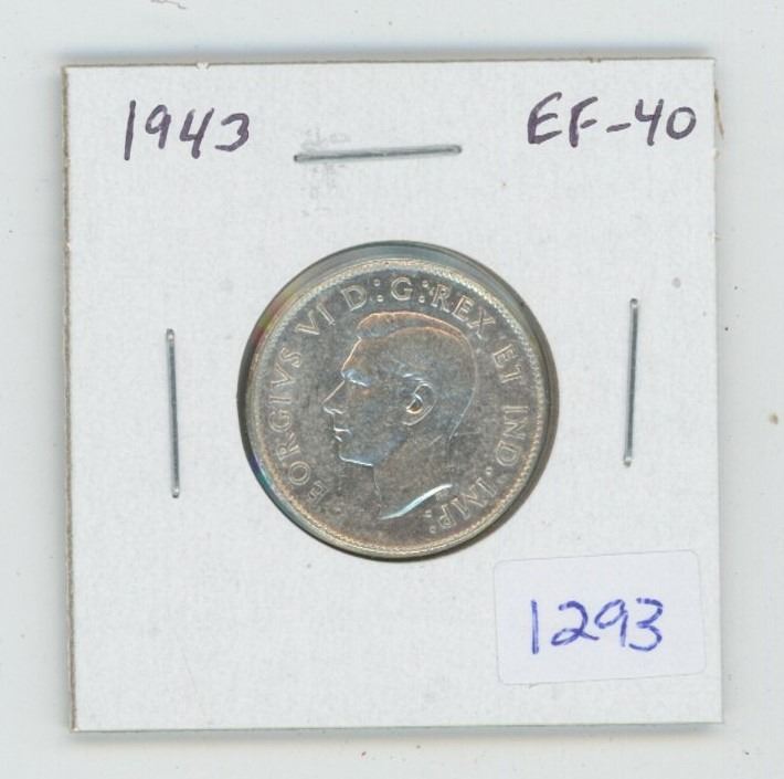 1943 George VI Silver 25 Cents. World War II issue. EF-40. Nice.