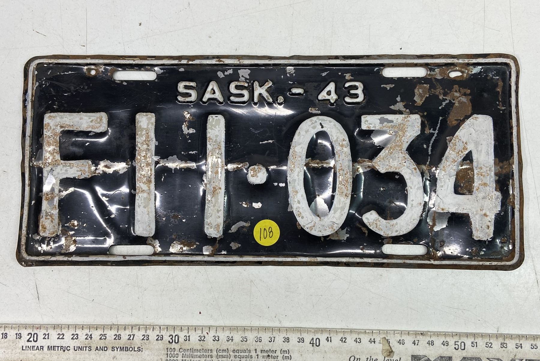 1943 Saskatchewan Canada Vintage License Plate F 11-034
