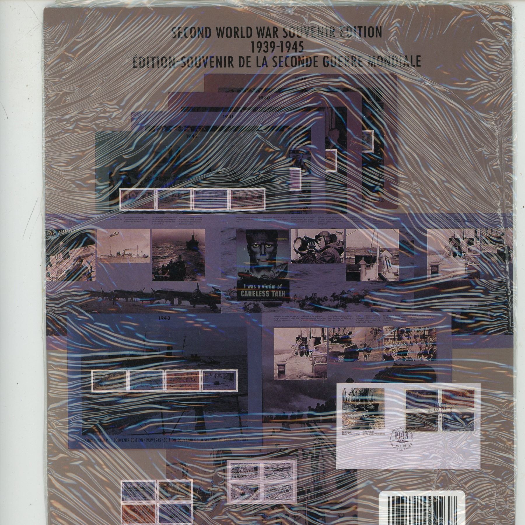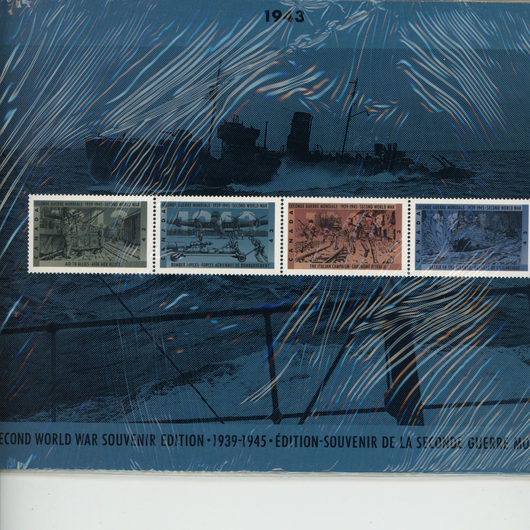 1943 Second World War Commemorative 43 Cent Stamps. Aid to Allies, Bombers, Italian Campaign & Battle of the Atlantic. House in its unopened Canada Post packaging. Mint.