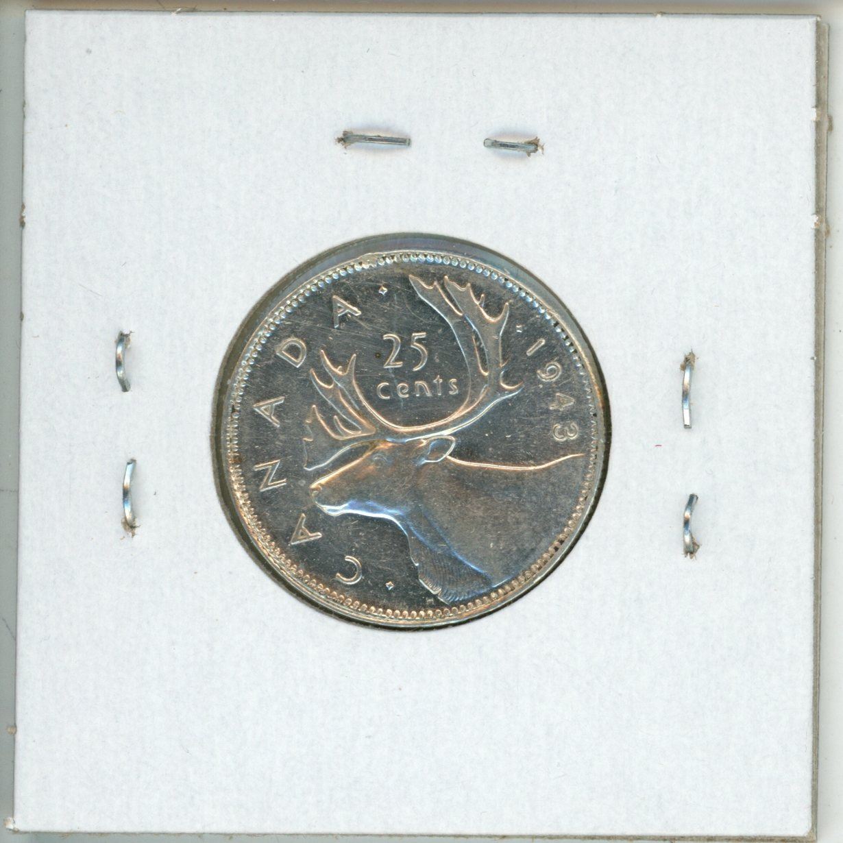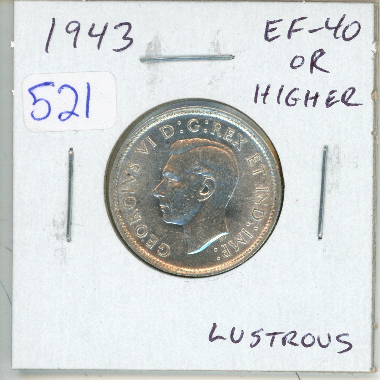1943 Silver 25 Cents. EF-40 or higher. Lustrous.